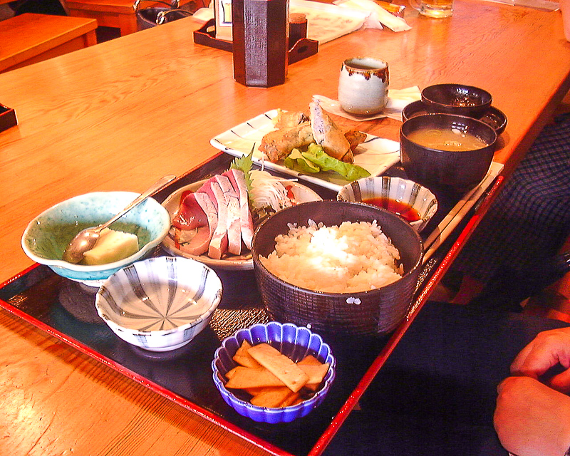 で、見終わった後の昼食は、映画館の近所にある「えぼし」に決めています。元さかな屋さんとのことで、日替わりの刺身定食が新鮮で抜群にうまい。ちなみに写真は、この日の日替わりのひとつ「ハマチ刺・しらす新生姜春巻定」です。ああ、満足・・・ |