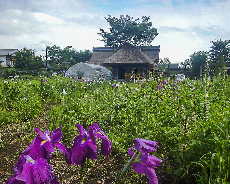 忍野といえば定番の藁葺き屋根の農家、水車の後ろに富士山という雪景色が浮かびますが、古い立派な農家はまだ健在でした。 |