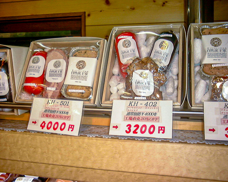 このお店は、自家製の肉の他にハム、ソーセージに加工して販売しています。これが、とても締まった感じでおいしいのです。今日は、自分たち用と知り合いの人へ贈答用として買いました。たまには、スーパーのばかりでないハムも食べたいですからね。 |