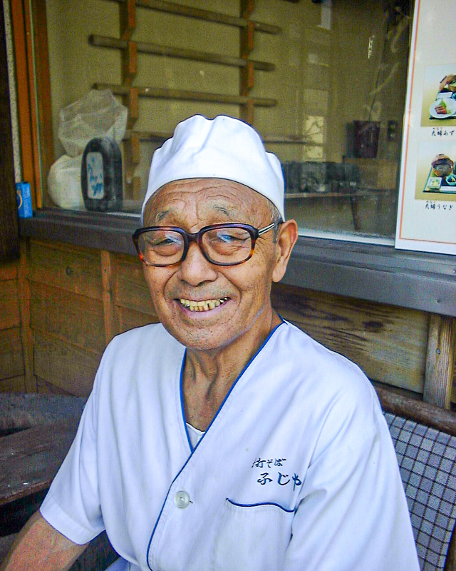 大和市西鶴間の住宅街の一角に「ふじや」というそば屋さんがあります。たまには、さっぱりとソバでもと昼食に出かけました。いつも店先でニコニコして車の誘導などしているおやじさんは、もうソバを打つことはしませんが、立派な「看板じいさん」です。