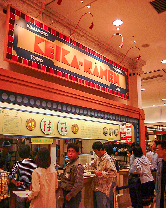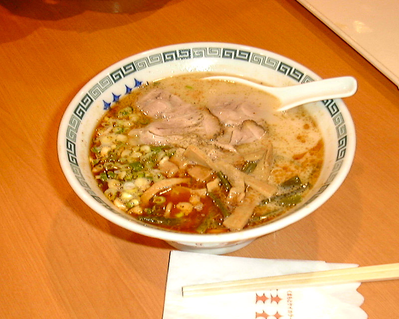 1階には食料品売場がある他にラーメンやカレーなどを買い求め、共通の広場のテーブルで食べるといったシンガポールのフッカー方式の店舗がいくつかあります。学生時代に新宿3丁目で食べたあのこってりした熊本・桂花ラーメンの味が懐かしく、つい注文してしまいました。