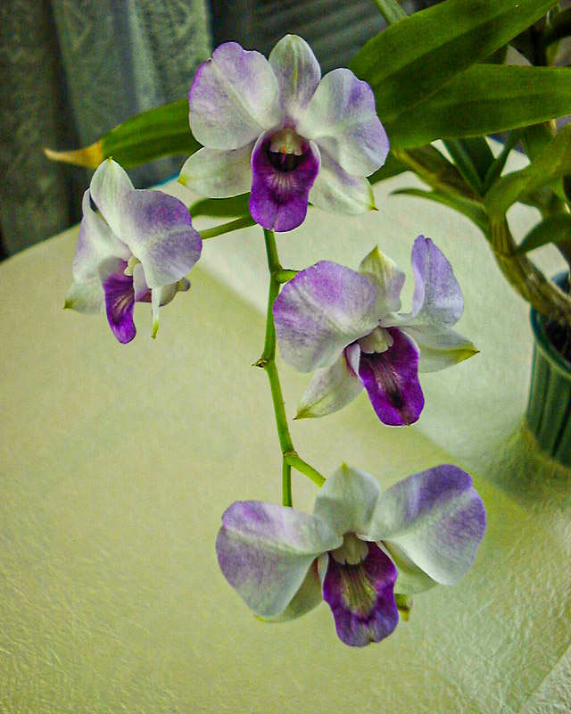 我が家にはいくつか蘭の鉢植えがあるのですが、そのうちのひとつのデンファーレが季節はずれに咲き始めたのです。いつもは、2月ごろからが季節なのですが、2週間ぐらい前から咲き始めました。