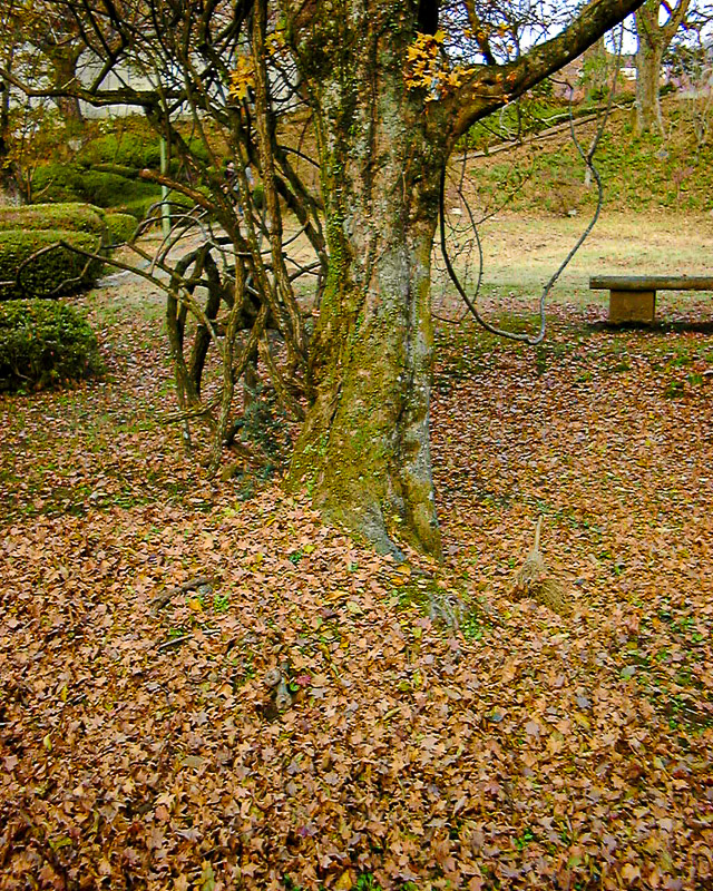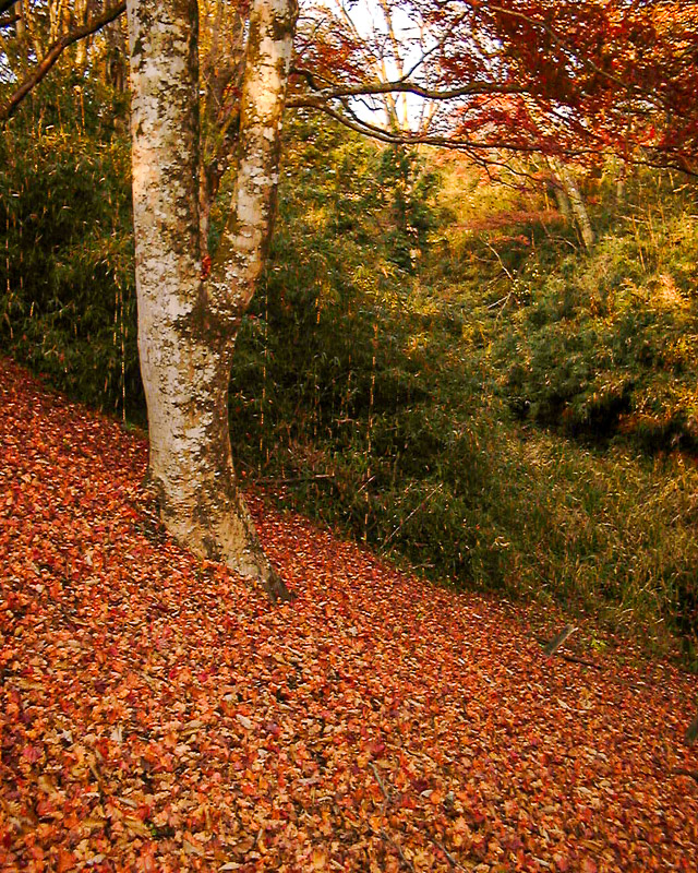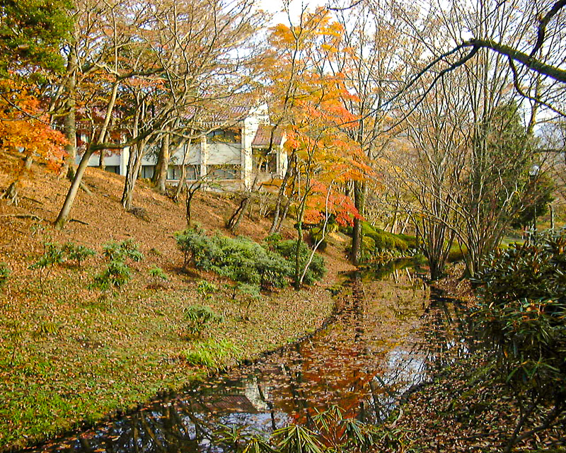 てたとのこと。庭、というより森ですが、よく手入れが行き届いています。小川が流れ、高木が鬱蒼とし、地面はこの季節、枯葉で埋め尽くされます。紅葉を追い求めてきて、結局、この宿で見た紅葉が一番でした