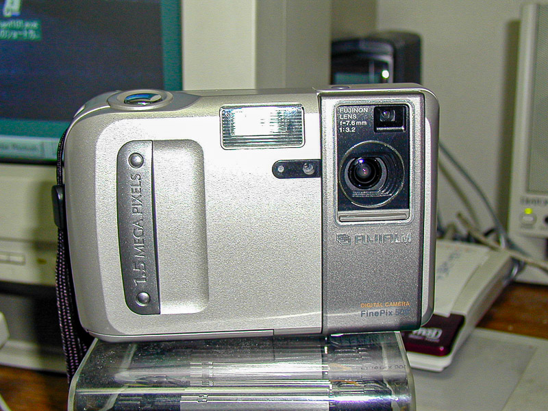 前のフジフィルムのFinePix500がスマートメディアで単3形電池使用であったので、それが生きるものを考えました。ソニーのF505は、デザインとカールツァイスレンズが魅力で候補のひとつでしたが、ソニーしか使えないメモリースティックとバッテリーでは諦めるしかありませんでした。オリンパスのC-2500Lは現在、一般のデジカメでは最高クラスの250万画素の一眼レフタイプで、しかも、スマートメディアで単3形電池の条件を満たしており、最有力候補でしたが、大きくガサばり無骨なデザインが購買意欲を減退させました。