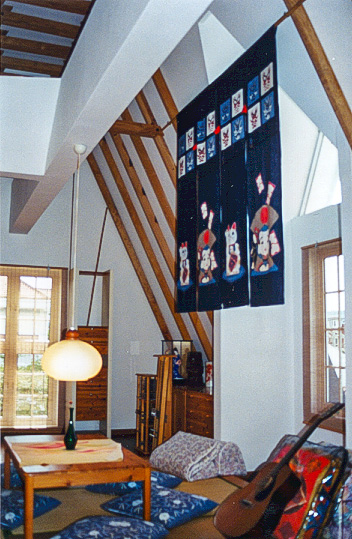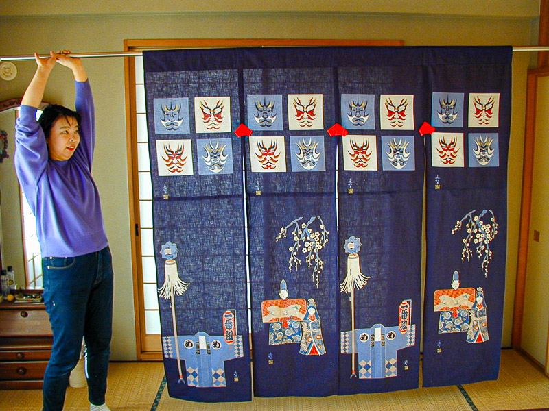 大きなのれんなので、どんな具合に飾られるのか、様子がわからなかったので、送られてきた写真を見てびっくりしました。これだけ部屋が大きければ、2畳分ののれんもちょうどいいかもしれません。もう1枚頼まれて、先日完成したのが下の写真です。これもまもなく到着して、飾られるはずです。