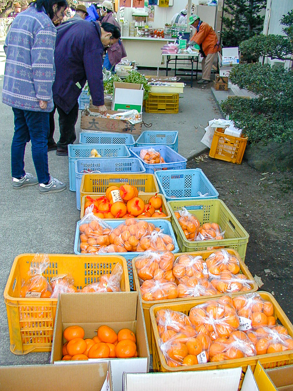 そして、今日はまさに、シーズン最高の日、人の出も次第に増え、路上では農家のおじさんが柑橘系の果物(みかん、八朔、レモン、キンカン)をたくさん売っていました。ちなみに、八朔とキンカンとその他にショウガの梅漬を買ってきました。