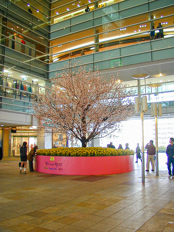 小田急線、相模大野駅のステーションスクエアには早々と、桜が咲きました。まさか・・そりゃ、わかりますよね。つくりものってえ、ことは。