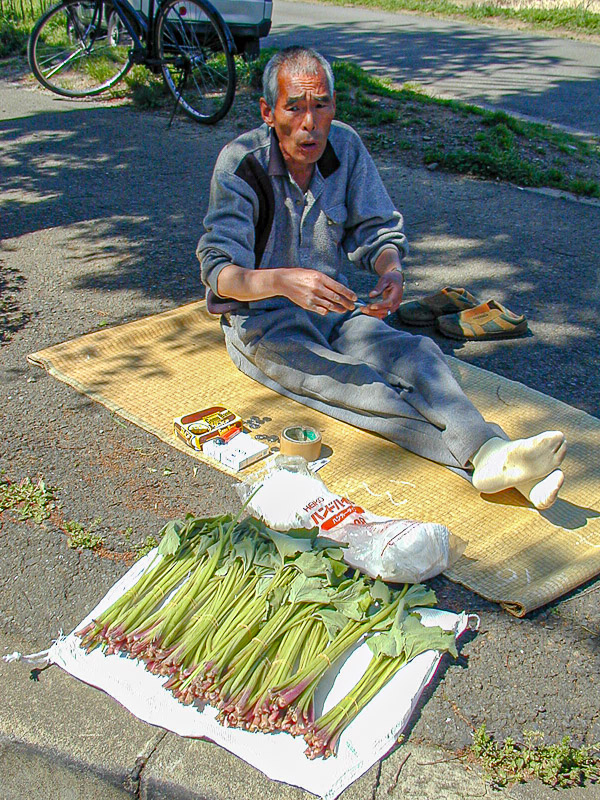 道ばたでは、農家のおじさんがフキを売っていました。キャラブキがいいよ、と作り方を教えてくれました。1束100円を6束ほど買いました。孫の小遣いにでもするのでしょうか。今日は、帰ってキャラブキに挑戦です。 |