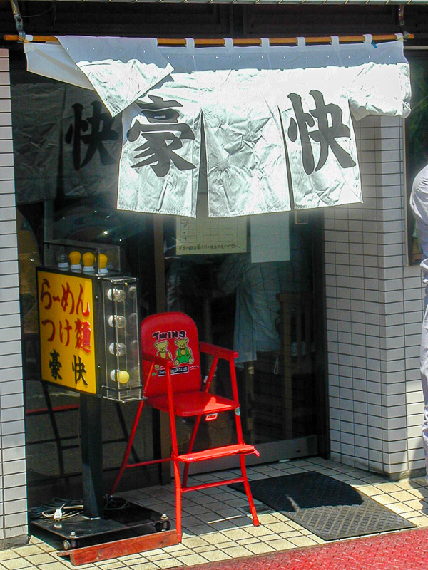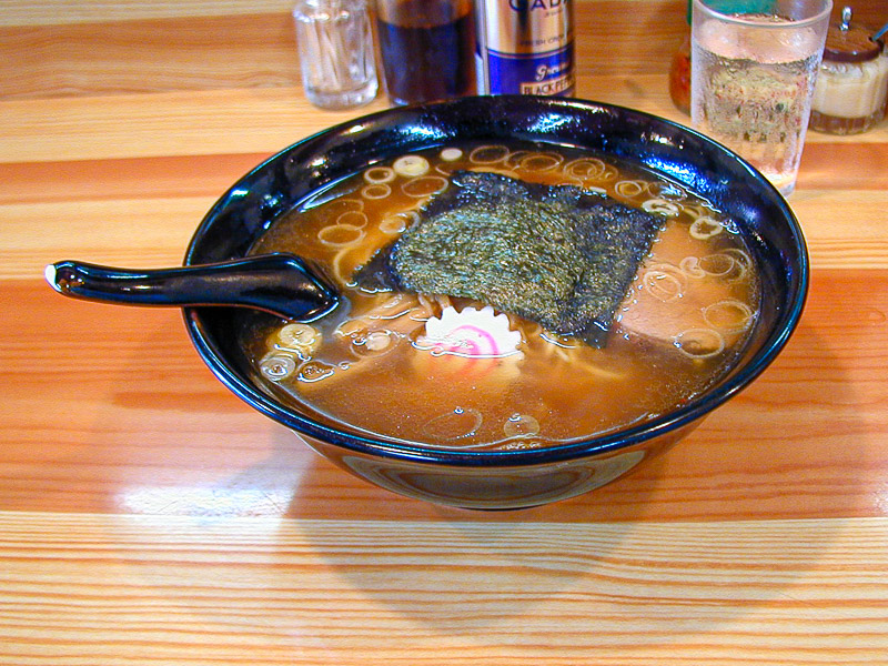 まったく初めて味わうタイプのラーメンです。和風ラーメンで、かつを、煮干し、鶏がメインの濃厚なスープですが、臭みがありません。麺は自家製らしい、ストレートな中太でツルツルしています。チャーシューは、分厚くて柔らかいのが1枚。なかなか面白いラーメンでした。暑さのせいもありますが、つけめんの注文が多いようです。今度は、つけめんでいってみようか、と思います。 |