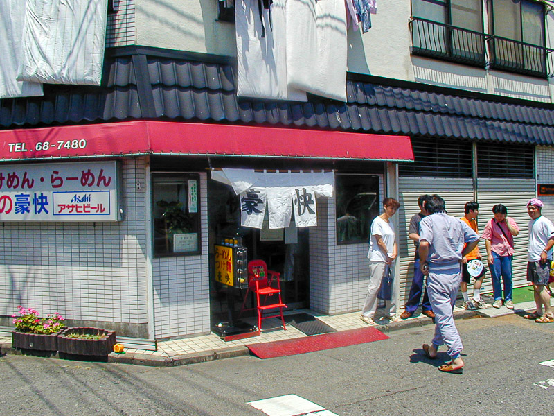 小田急江ノ島線の桜ヶ丘駅から歩いて3分くらいのところでしょうか。表通りの裏にあって、わかりにくい場所にこの「つけめん・らーめん味の豪快」があります。気絶しそうなくらいのこの暑い最中、しかも昼時に、ラーメンをいただきました。