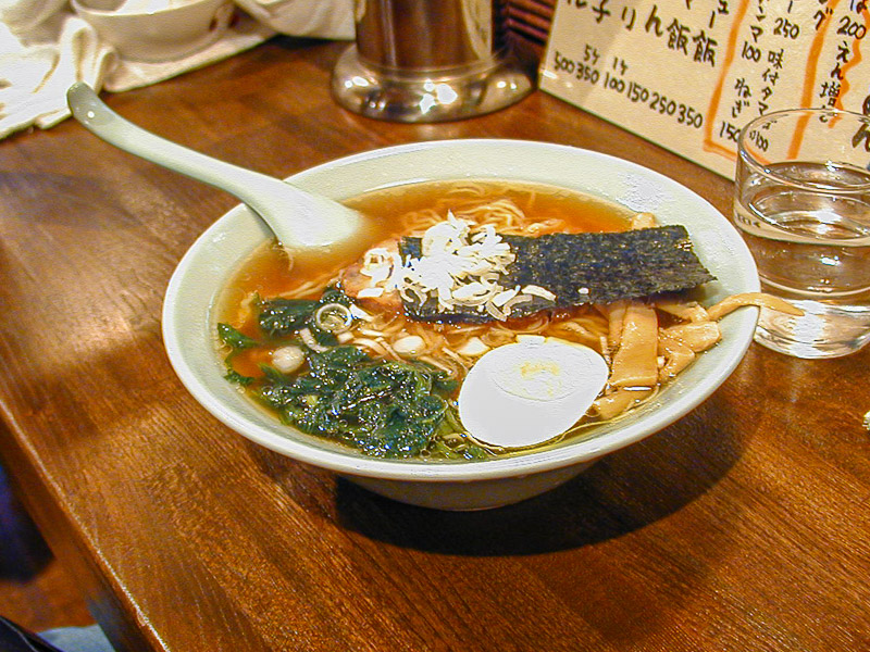 | 昨日に引き続き、「にじゅうまる」に挑戦。妻も動員して、「くろ」の醤油ラーメンと夏季限定の冷やしラーメンをいただきました。 醤油ラーメンは、一般的な東京ラーメンと言われるあっさりとした鶏がらスープで縮れ麺を使用、ほうれん草、シナチク、ノリ、チャーシュー、味玉子半分、刻みネギがのっている。