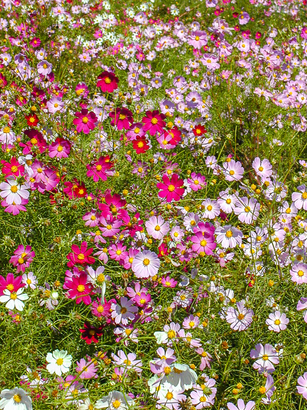 昨年もこのコスモスの時期に来ました。今年はちょっと来るのが遅かったようで、ほとんど終わりという感じでした。でも、久しぶりに晴れた土曜日、残った花たちが日に照らされて、きれいに輝いていました。