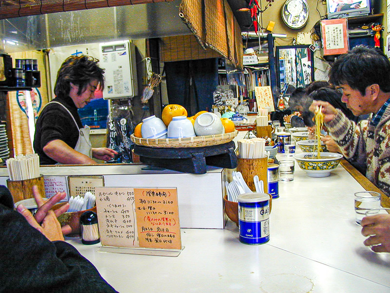 名前は「雷文」(らいもん)、行列ができていました。待つこと30分、中はL字型のカウンター席で8人が座れる程度。そして、驚くことにカウンターの中では、50前ぐらいの元気のいい女性ひとりで切り盛りしているのでした。