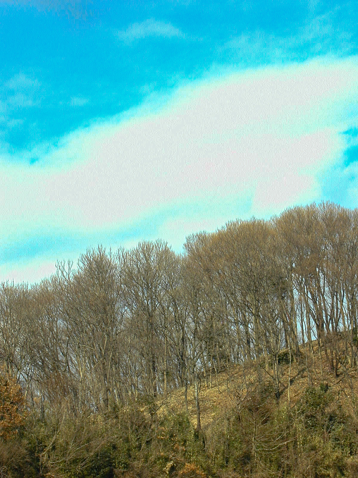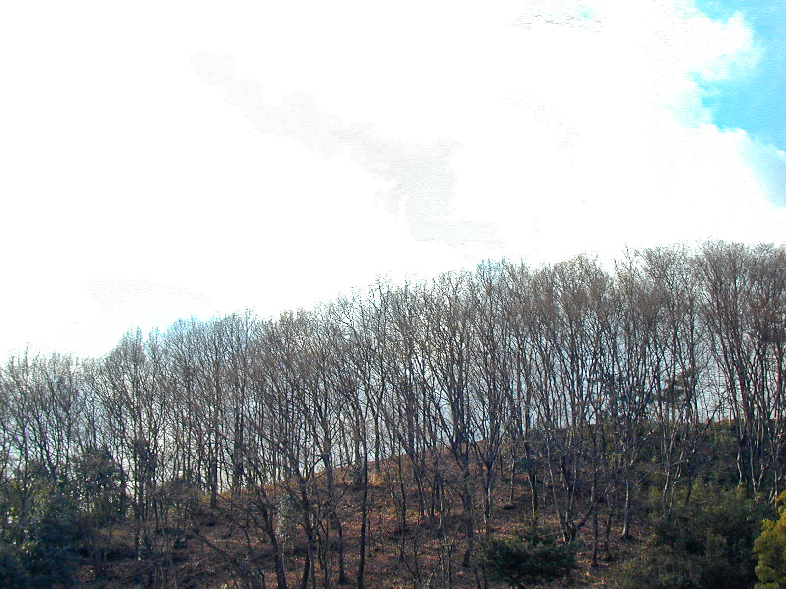 伊勢原の農家がある地域によく見られる裏山です。秋にすっかり葉を落とした木々が春の芽吹きを待って、冬が終わるのを耐えているようです。こんな枝ばかりの林が妙に心に残ります。