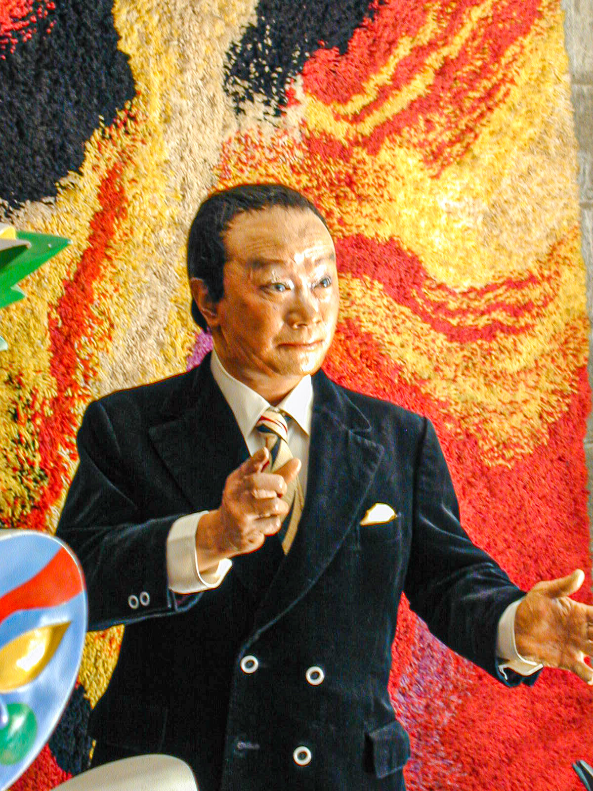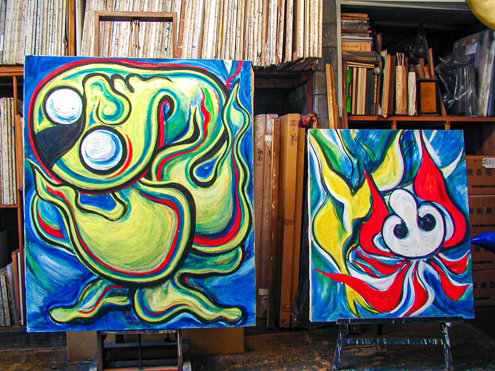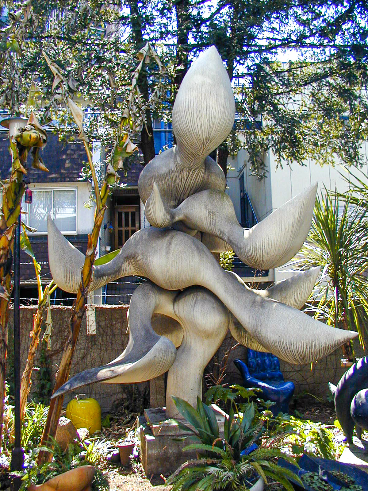 テレビで南青山にある「岡本太郎記念館」のことを紹介していて、どうしても行ってみたくなり、今日、訪ねてみました。アトリエそのままとその脇に増設された展示館とでできていています。アトリエには無数の作品が棚に収められ、イーゼルの下の絨毯には、絵の具の飛び散った状態そのままが残されていて、彼の息づかいが伝わってくるようでした。庭には、彫刻が多数置かれていて、楽しい空間を創り出しています。