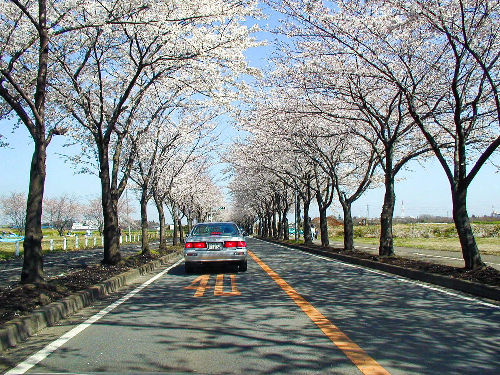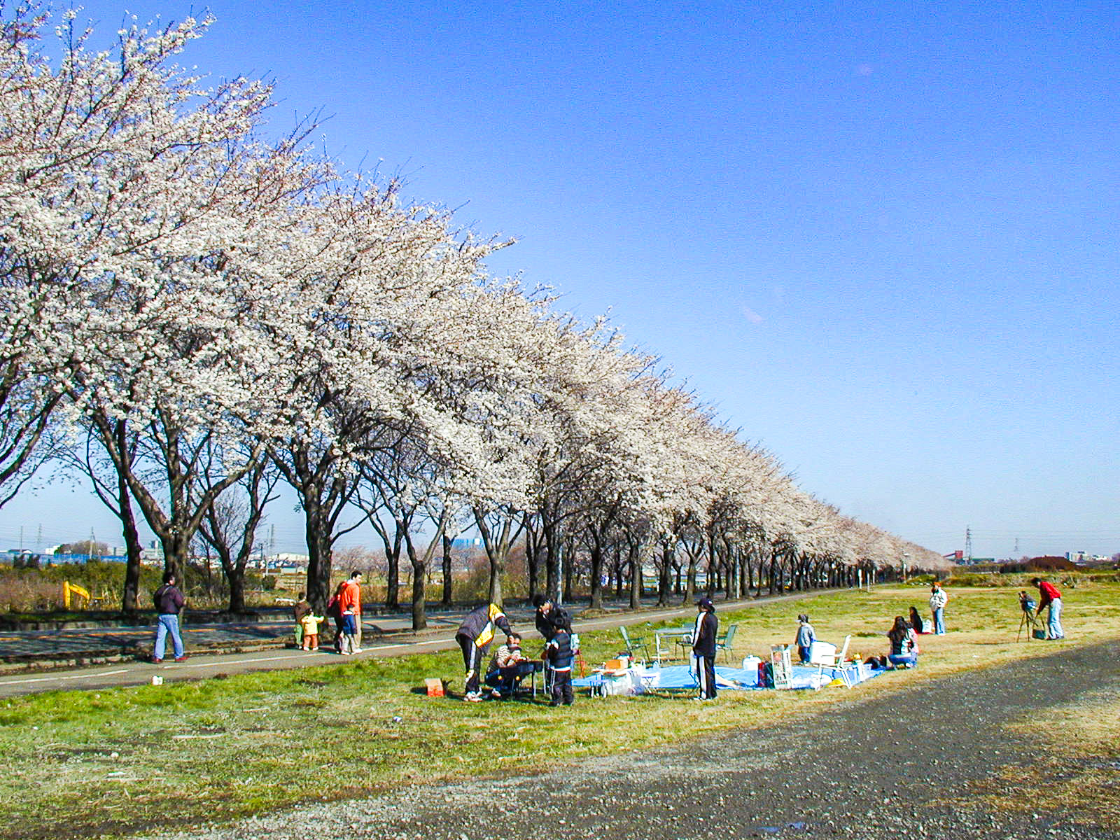 海軍通りは朝早くから花見の客で賑わっていました。遠くに雪を頂いた丹沢連邦も見え、景色としてはよかったです。