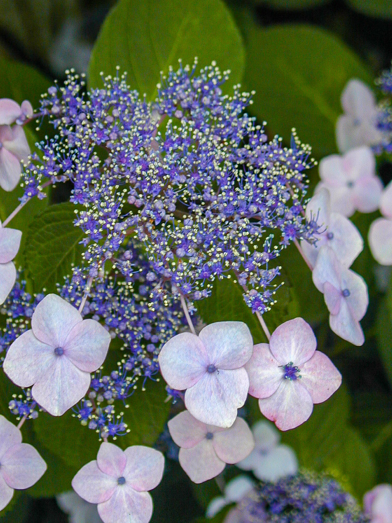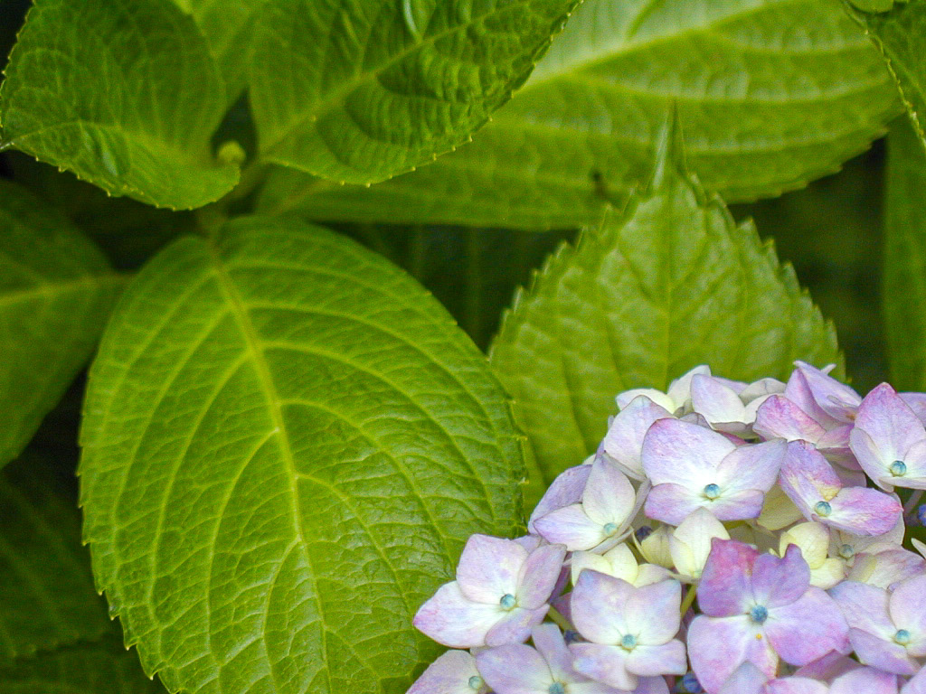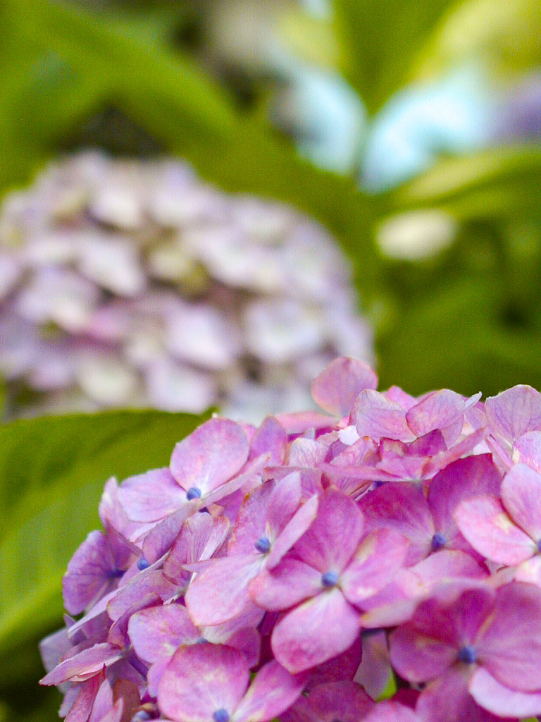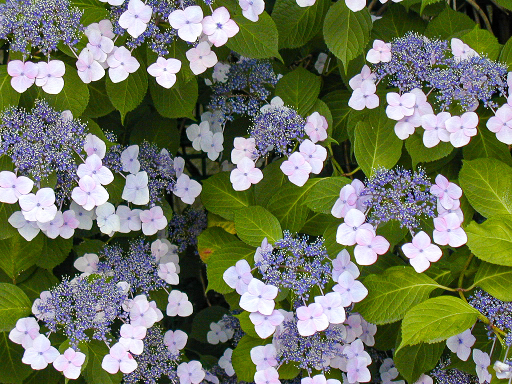 大和市深見というところにある仏導寺というお寺で撮った普通の紫陽花と南林間の自宅近辺の道路脇にはみ出して咲いていたガクアジサイです。