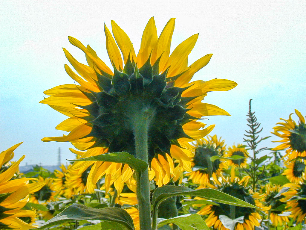 午前中の空いている時間にまた座間へひまわりを撮りに行って来ました。呆れて見てやってくださいね。今日のひまわりは背を向けたひまわり・・・みな同じ方向を見ているので、逆に回ると背中ばかりになります。