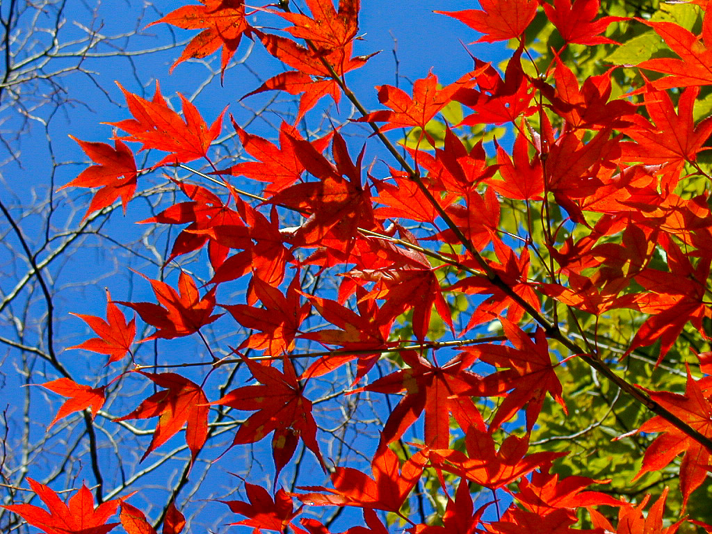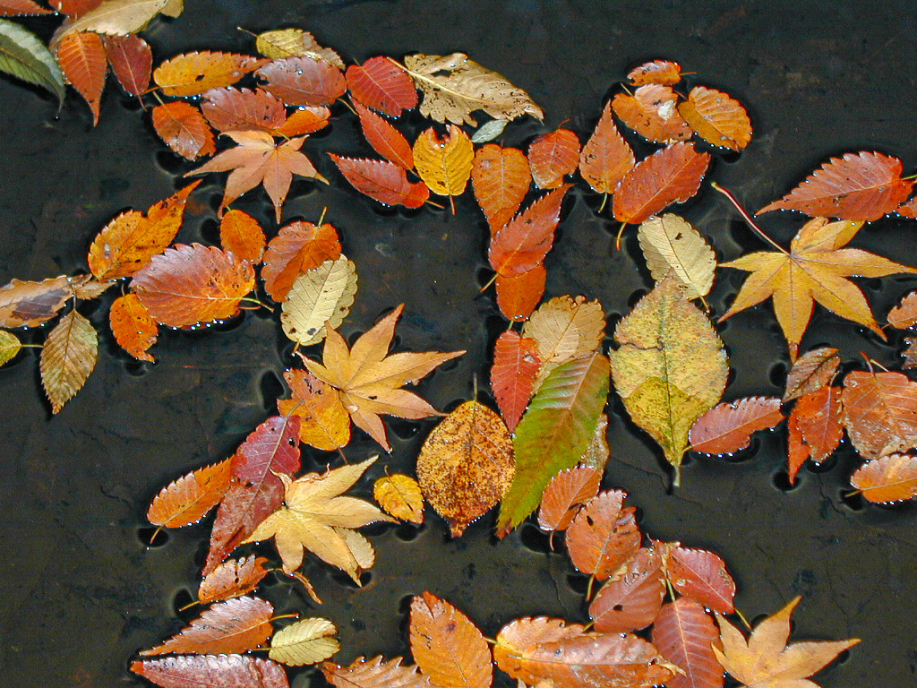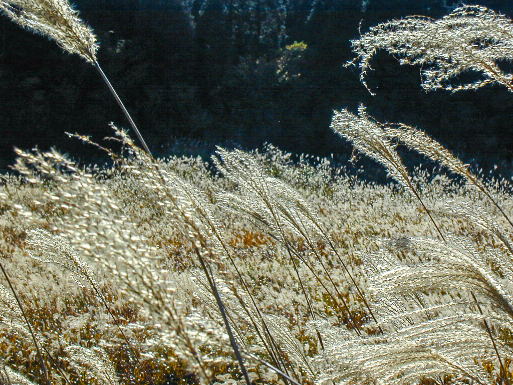 箱根の紅葉は今が盛り。見る花もない季節だと思って訪ねた「箱根湿生花園」では、各種のカエデが紅葉しており、花のない季節に色を添えていました。近くの仙石原のススキ草原では最後の輝きを見せていました。そして、泊まった宿の庭に流れる小川に浮かぶ落ち葉をストロボを点けて撮影したら、ちょっと面白い感じになりました。翌朝(12日)は、朝から雨。宿からまもないところの橋の上から見下ろした雨にけむる紅葉の様子・・・。