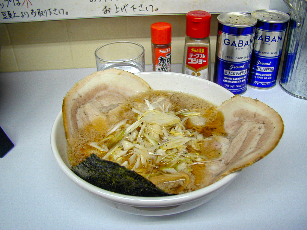 「塩」と「こってり」を注文する。写真は、こってりの方。盛り付けのとき、ネギの上に熱した鶏の油をかける音が心地よい。丸い大きな2枚のチャーシューが印象的、スープはしょう油だが澄んでいる。スープを飲むと、塩味が結構きついが甘い感触があって私の好みです。麺は、細い玉子麺でストレート。チャーシューは、口に入れるとすぐに崩れるような柔らかさで絶品です。