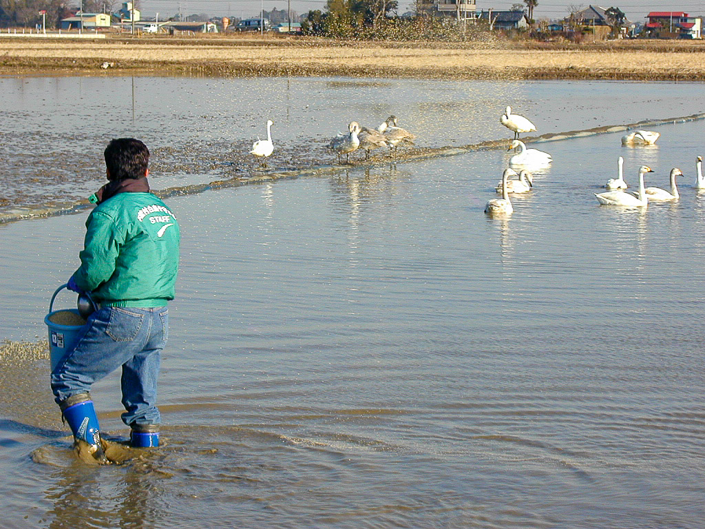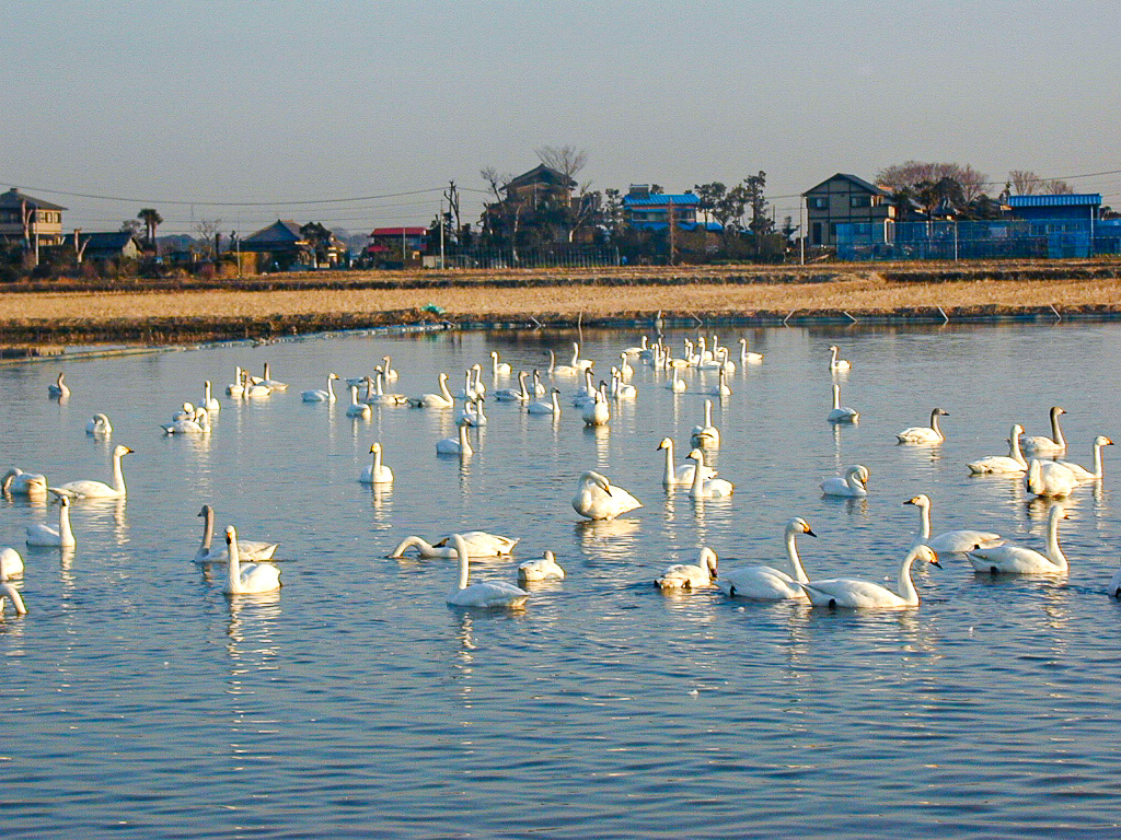 年々白鳥たちの数が増え、400羽ほどになっているそうです。「白鳥の湖」ならぬ「白鳥の田んぼ」ですが、日本でのしばしの休暇を楽しんでいるような白鳥たちの優雅な姿に見とれておりました。
