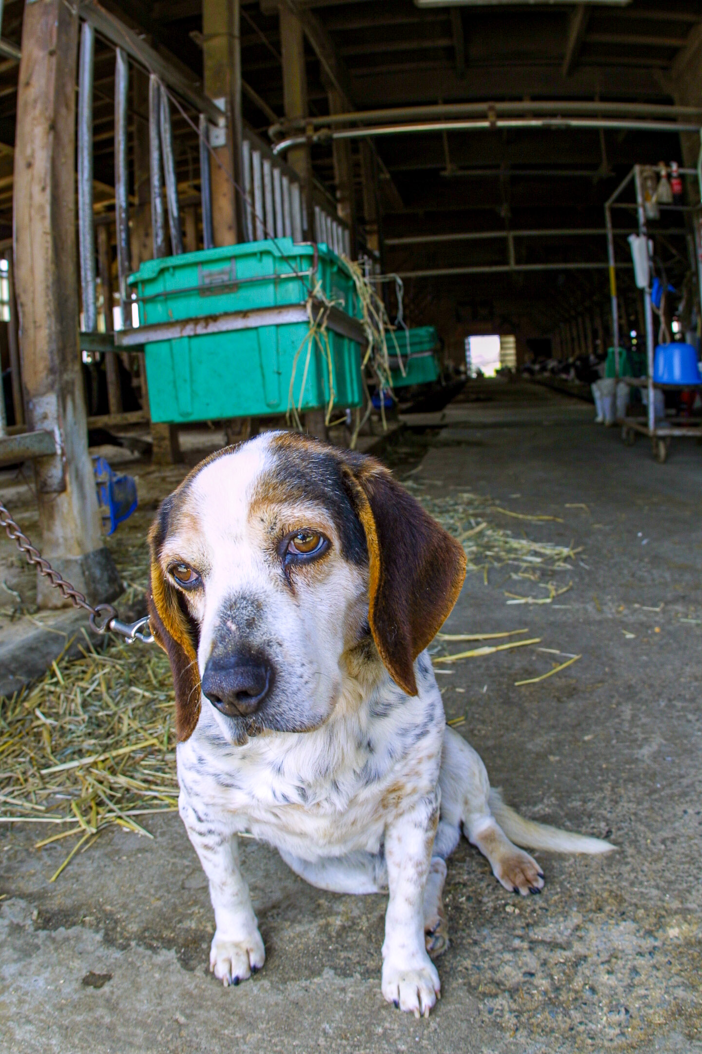 渋田川近くにある牛舎の番犬 君も疲れているね