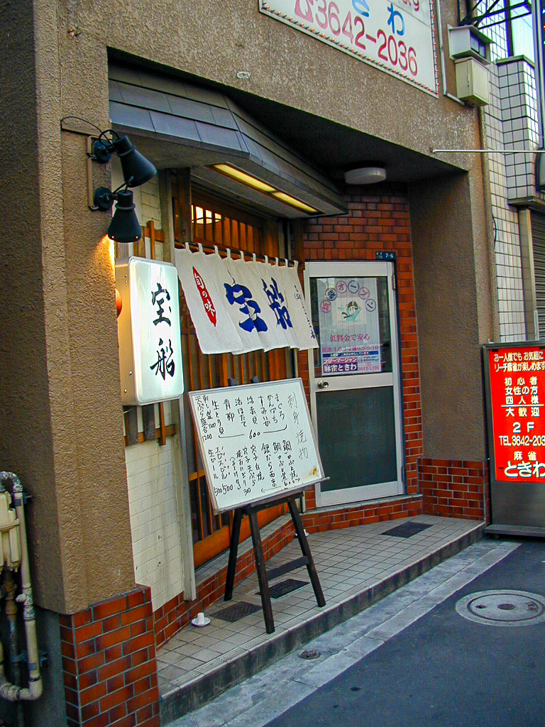 「宝船」という小料理屋さんです。先輩は勝どきに住んでおり、築地で仕入れた活きのいい魚や貝類を長年培った腕前でおいしく食べさせてくれます。専業主婦だった奥様と仲良く忙しいお店を切り盛りしていて、奥様もまだ慣れずにたいへんそうだけど二人とも充実していていいなあ、とうらやましくもありました。