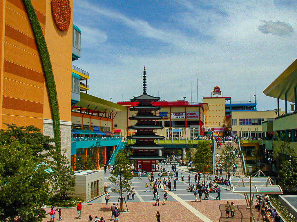 小田急線及び相鉄線の海老名駅前に先月オープンした巨大なショッピング街とシネコンが並ぶ「ビナウォーク」に行ってきました。エビナだから「ビナウォーク」というこけそうなネーミングですが、ゴールデンウィーク後半の初日、大変混んでおりました。広場の中央にどういうわけか七重の塔があります。以前の公園に建てられたものかもしれません。