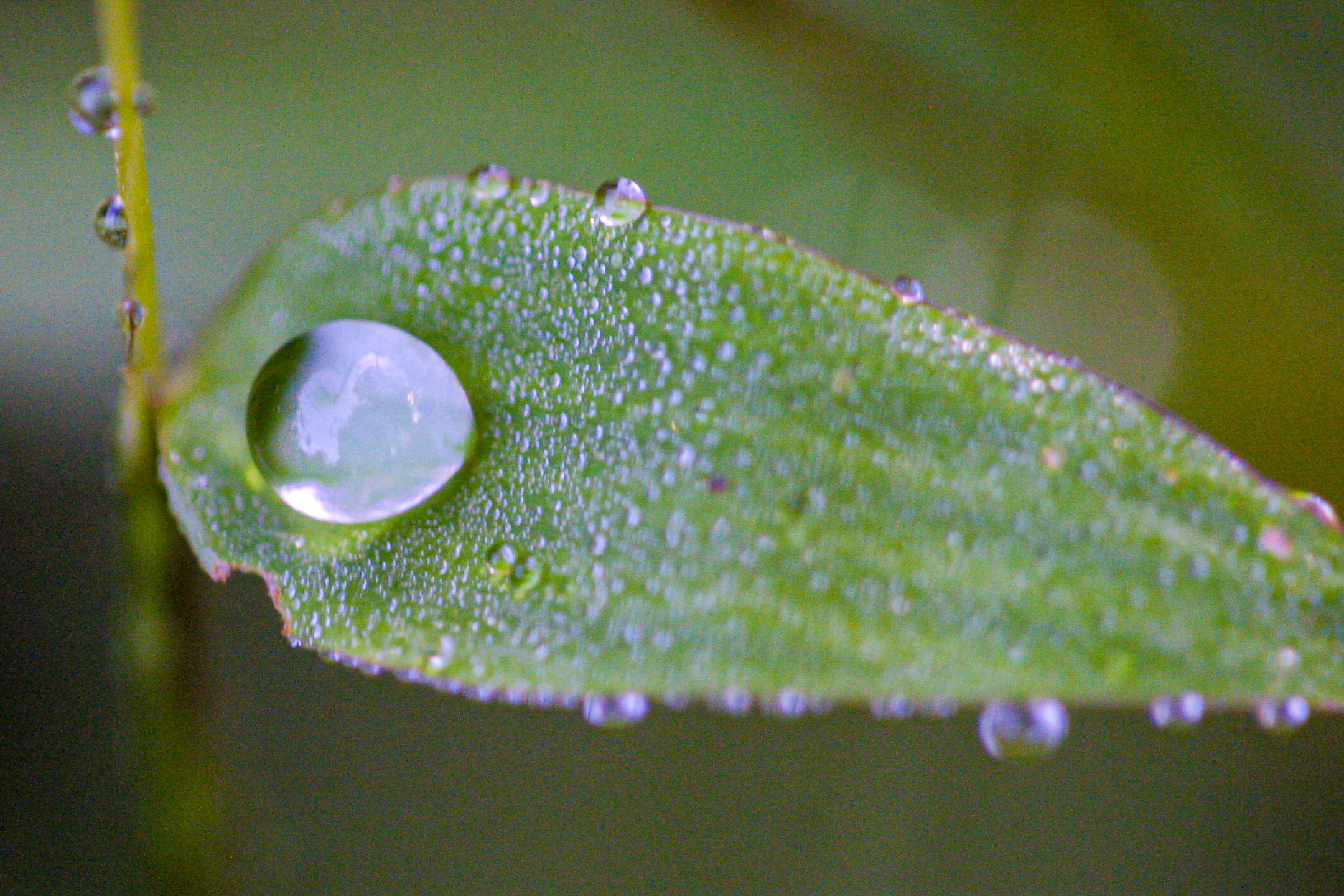 雨上がりの朝、いつものとおり、座間市の谷戸山公園に行ってきました。ごくありふれたものを撮りました。雨のあとは、水滴が宝石に変わります。そして、よく見るとレンズにもなっています。背後の木を映しています。秋の日の朝陽を浴びて、草木がもうひとつの命を与えられたかのようです。(EOS D30)