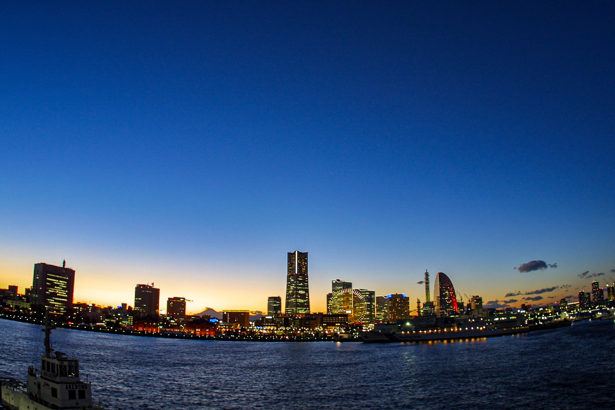 夕方、横浜港の大桟橋に行ってみました。夕景のMM21です。風がやたら強く、冷たくて手袋を持って行ってちょうどよかったです。(EOS D30)