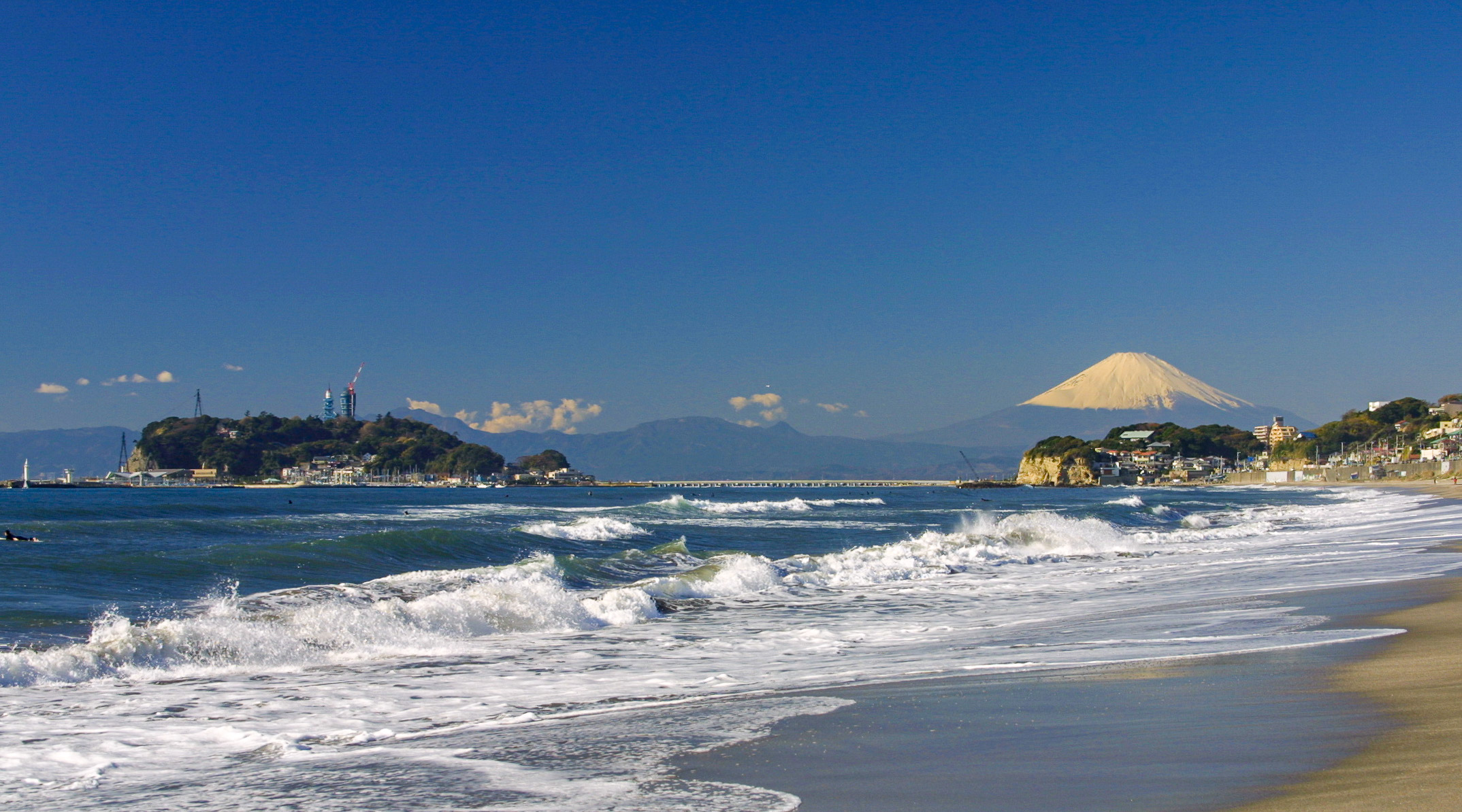 七里ガ浜で途中下車、フジヤマが見事ですね