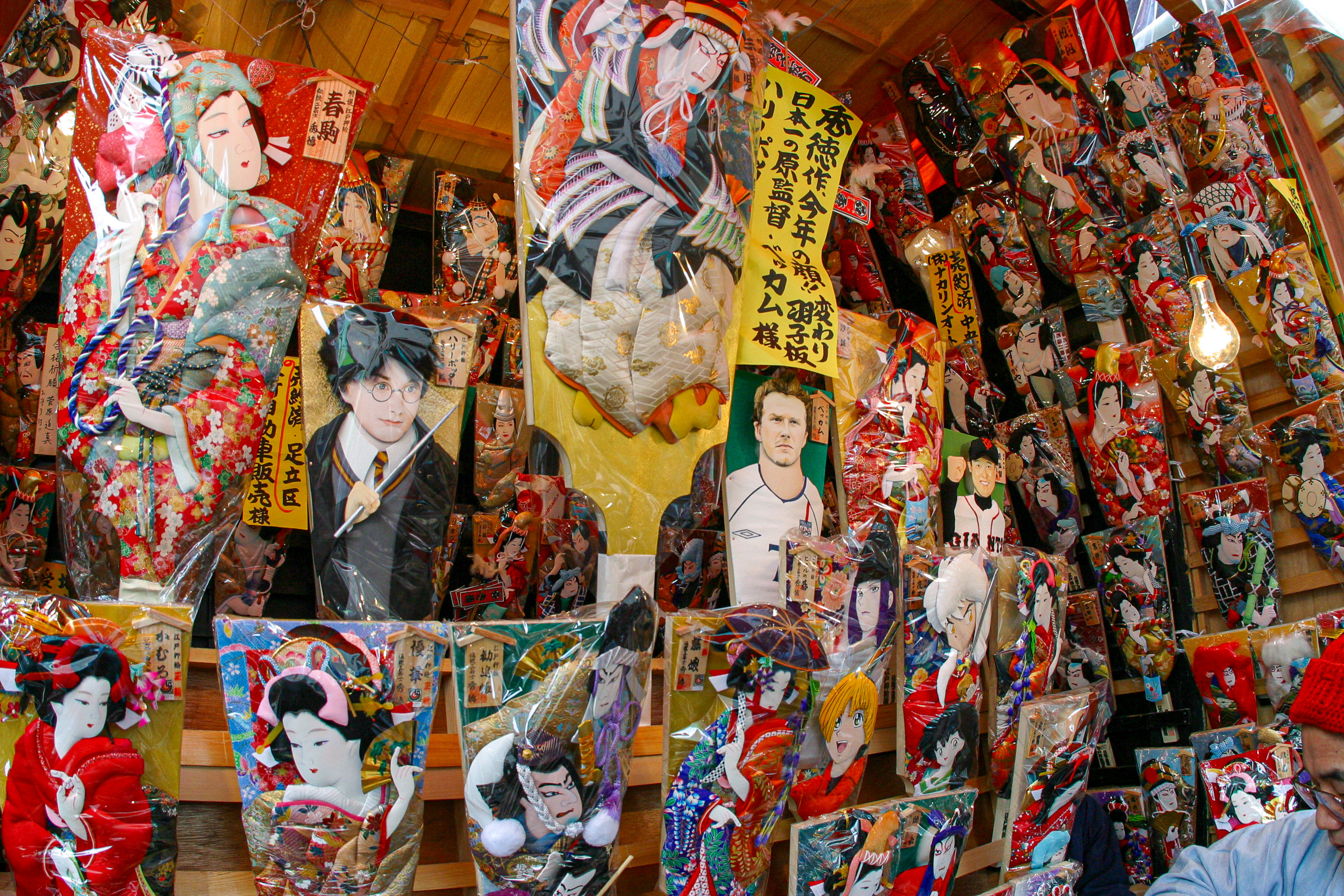 休みを取って、最終日の浅草の羽子板市に行ってきました。時々、小雨がぱらついたりしていましたが、浅草はたいへんな人で賑わっていました。毎年、その年を象徴する人物の羽子板が評判になりますが、今年は、ハリー・ポッターとベッカム様ですね。