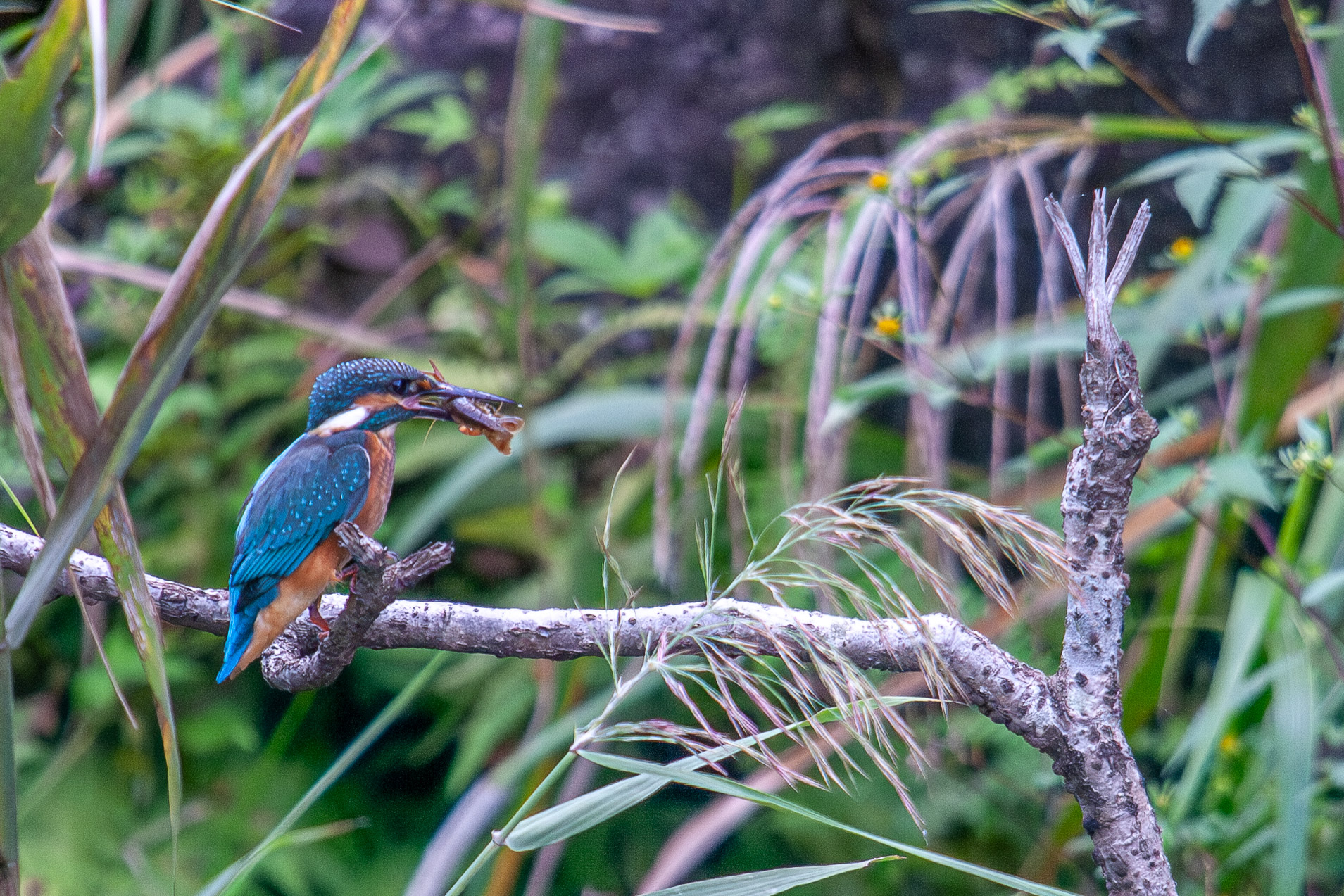 今日も休みです。昨日のカワセミにもう一度会いたい。その思いで朝早く、谷戸山に行ってきました。何度か飛んでいるのは見たのですが、写真には収められない。2時間ほどして帰ろうとしたとき、待ち構えた場所に来てくれました。しばらくして一瞬のダイビングで小さなザリガニを咥えていました。2枚目は、その部分をトリミングしたもの。腕前が足りないのですが、なかなかいい瞬間が撮れませんね。超望遠のいいレンズも欲しくなる・・・(^_^;)