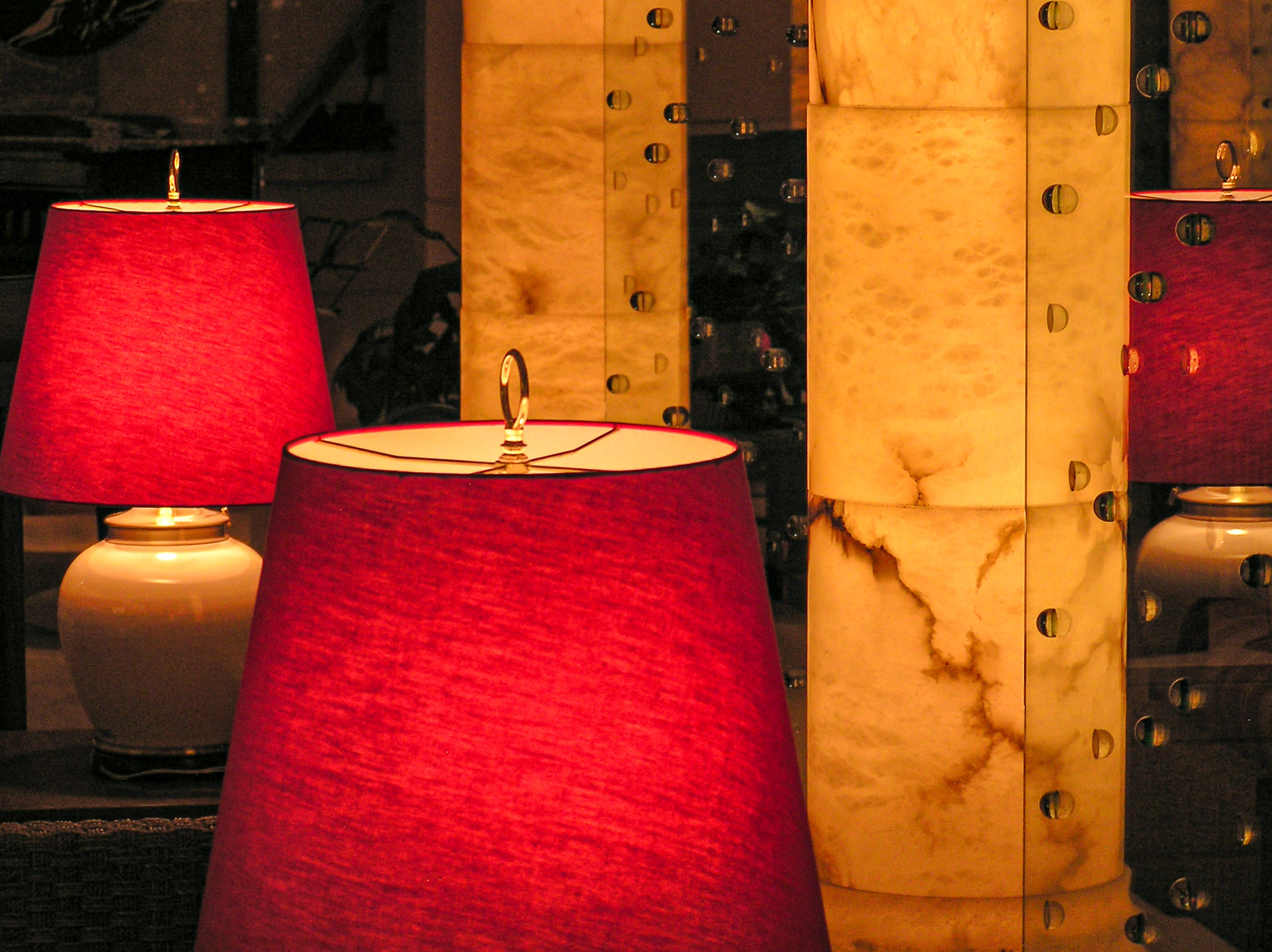 これは、宿泊先のロビー。ランプが素敵なオブジェになってました。 |