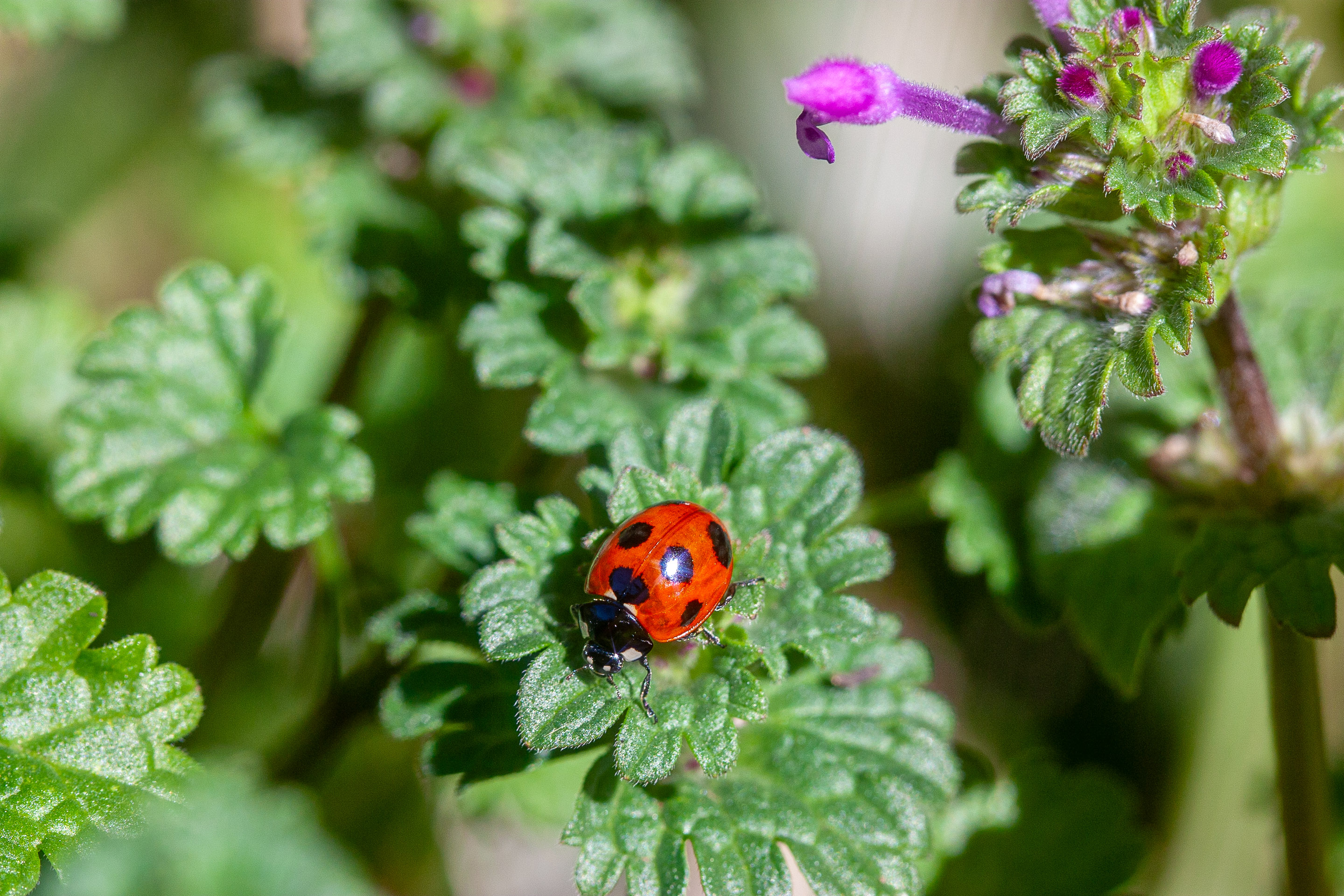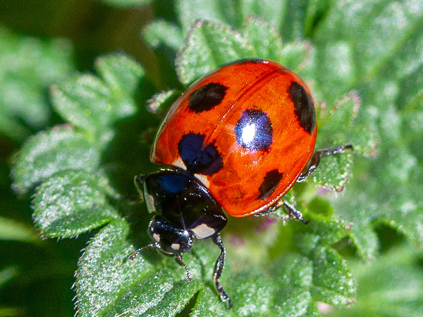 上のてんとう虫だけを拡大(トリミング)してみました。