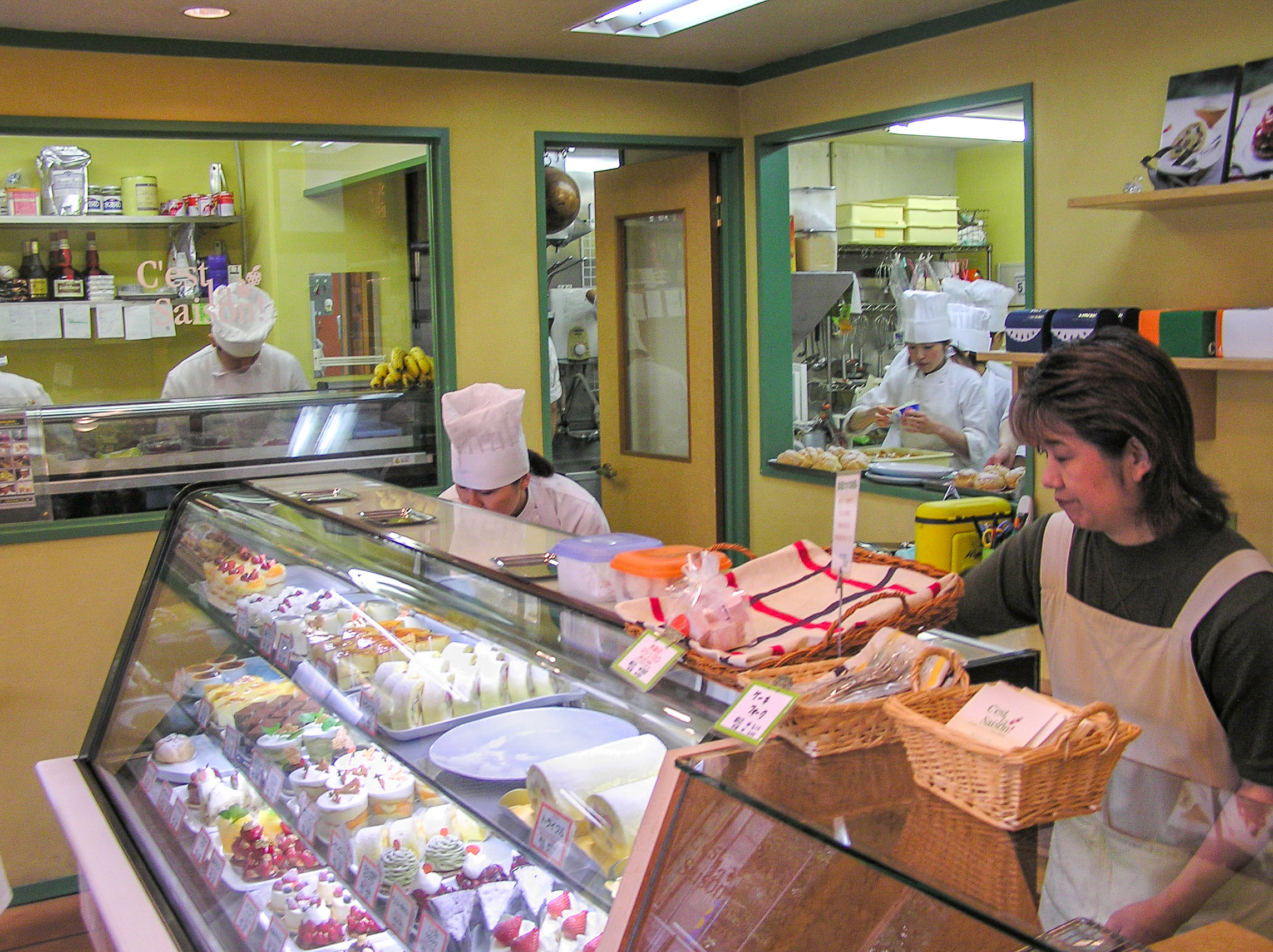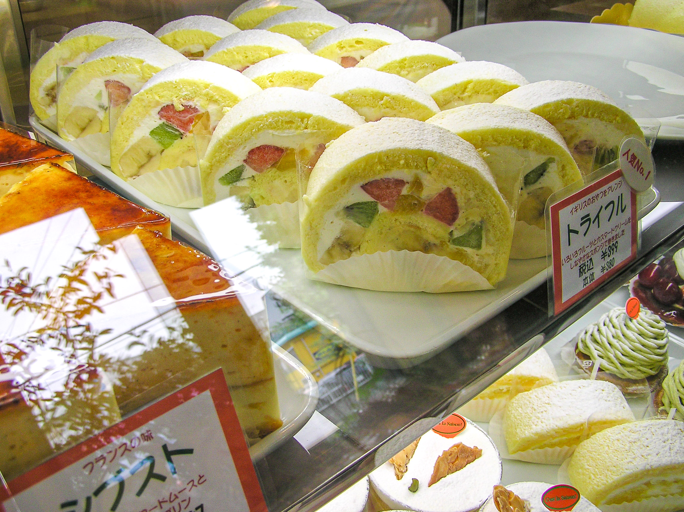 トライフルという色々なフルーツが入ったロールケーキが人気です。(一切れ380円)前にテレビで紹介された直後は、長蛇の列でたいへんな様子でした。今でも絶えずお客さんが入っており、ケーキがどんどん売れていくのでしょう。店構えの割りには10人以上のスタッフが働いています。今日は5種類ほど買ってみました。(^-^)(C-750UZ)
