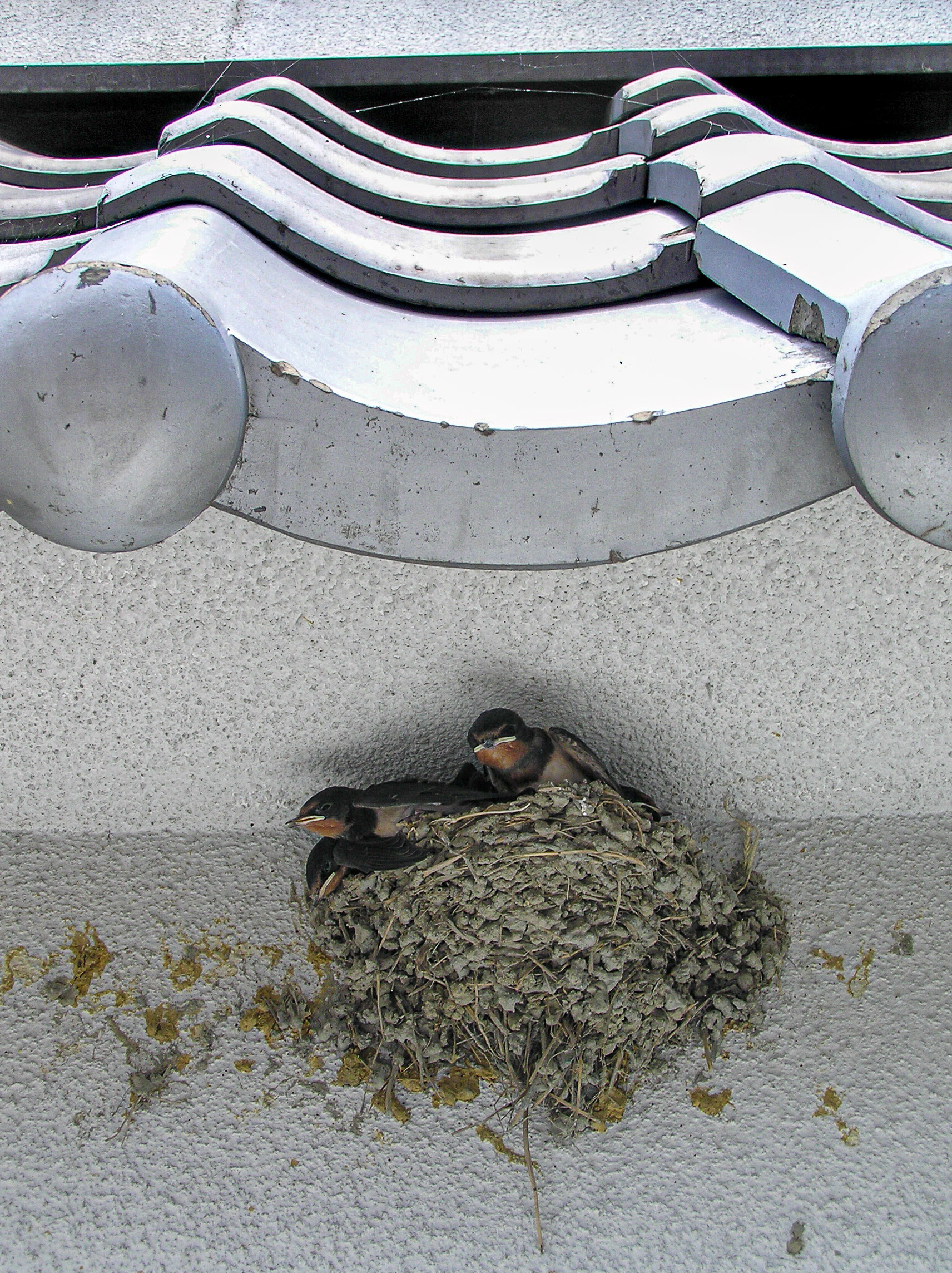 町の通りでヒナのツバメを軒下に見つけましたので、親鳥が戻らないうちに撮ってみました。親が運んでくるエサを今かと首を長くして待っているのでした。(^-^)