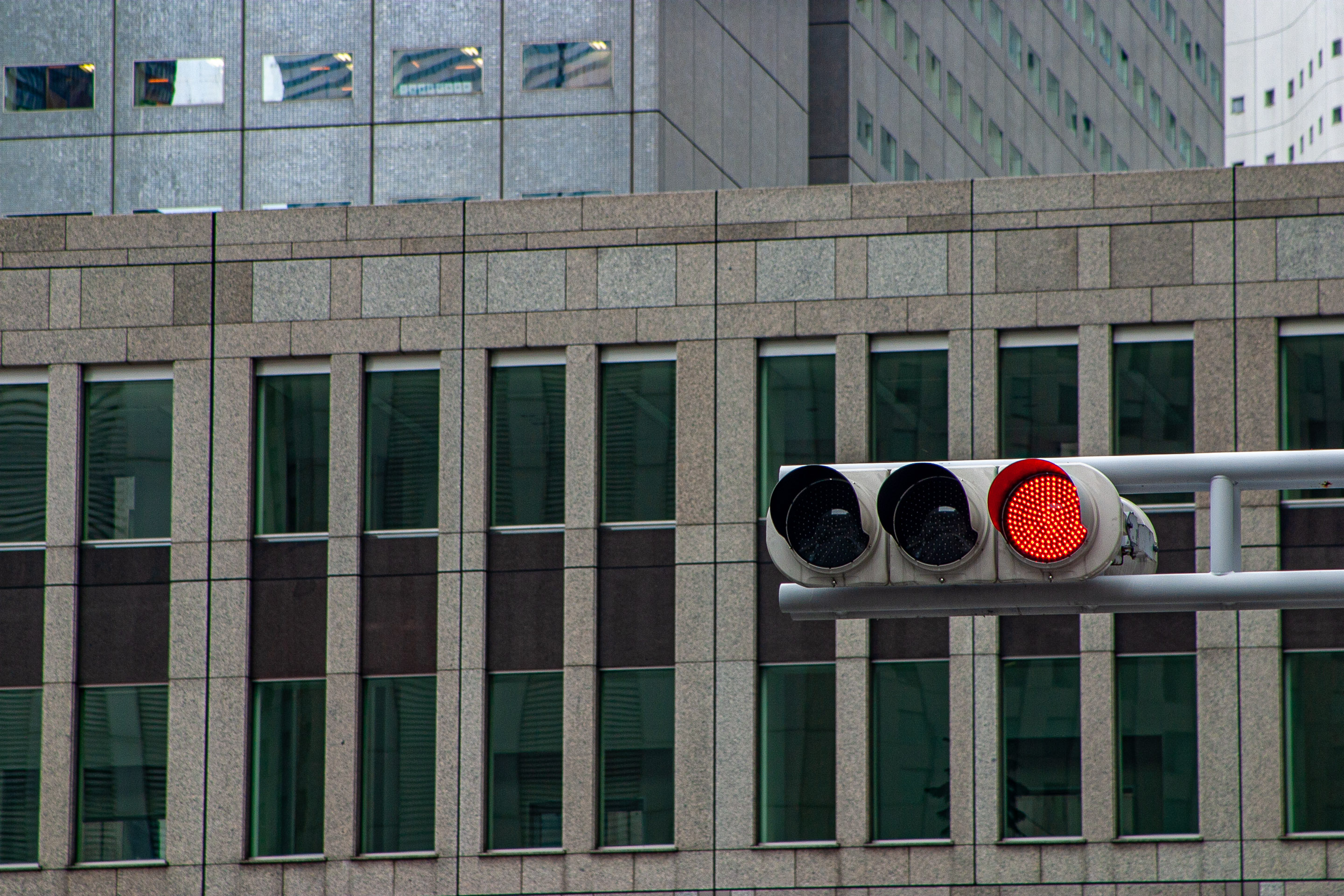 | 台風22号が猛威を振るい、首都圏を通り抜けて行った翌朝の今日、青空になるかと期待して、新宿に行ってみましたが、どんよりとした曇りのままでした。30年前にはよく通っていた街ですが、すっかり訪れることもなくなりました。久しぶりに来てみて、この曇りお天気のせいもありますが、色のない灰色ばかりの死んだ街のようでした。力を象徴する巨大なビルが、ただの墓標にしか見えません。もしかして、台風一過のピーカンの青空の下ならもっと違う感想を抱いたのでしょうが、でも、この街の本質は今日見た姿が真実に近いのかもしれません。(EOS