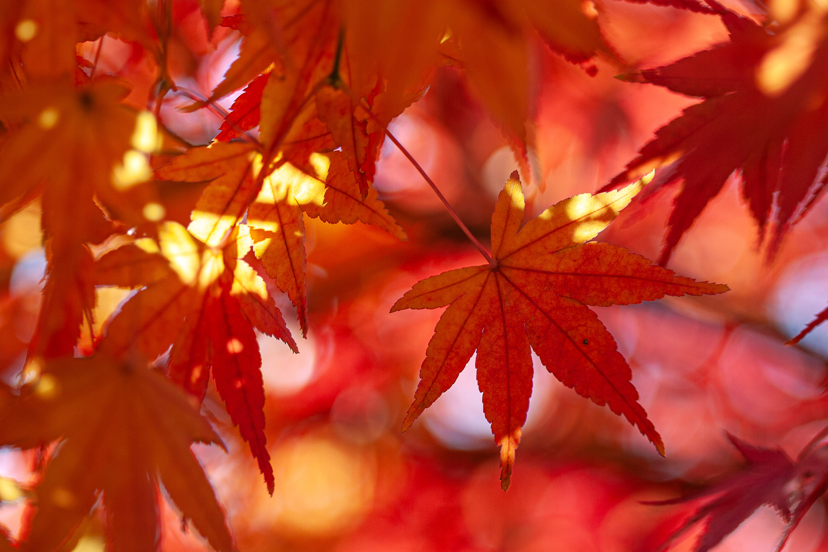 神奈川県立公園のひとつで、相模原市麻溝台に相模原公園があります。もみじの木がところどころに植えられていて、今日、一本の木がきれいに紅葉していました。午前中の陽の光がまぶしく、葉を透かしていたのでした。じっくり撮ったつもりがいまひとつこれっていうのが撮れませんでしたね。まだまだ、修行不足ですね(^_^;)。(EOS D60)