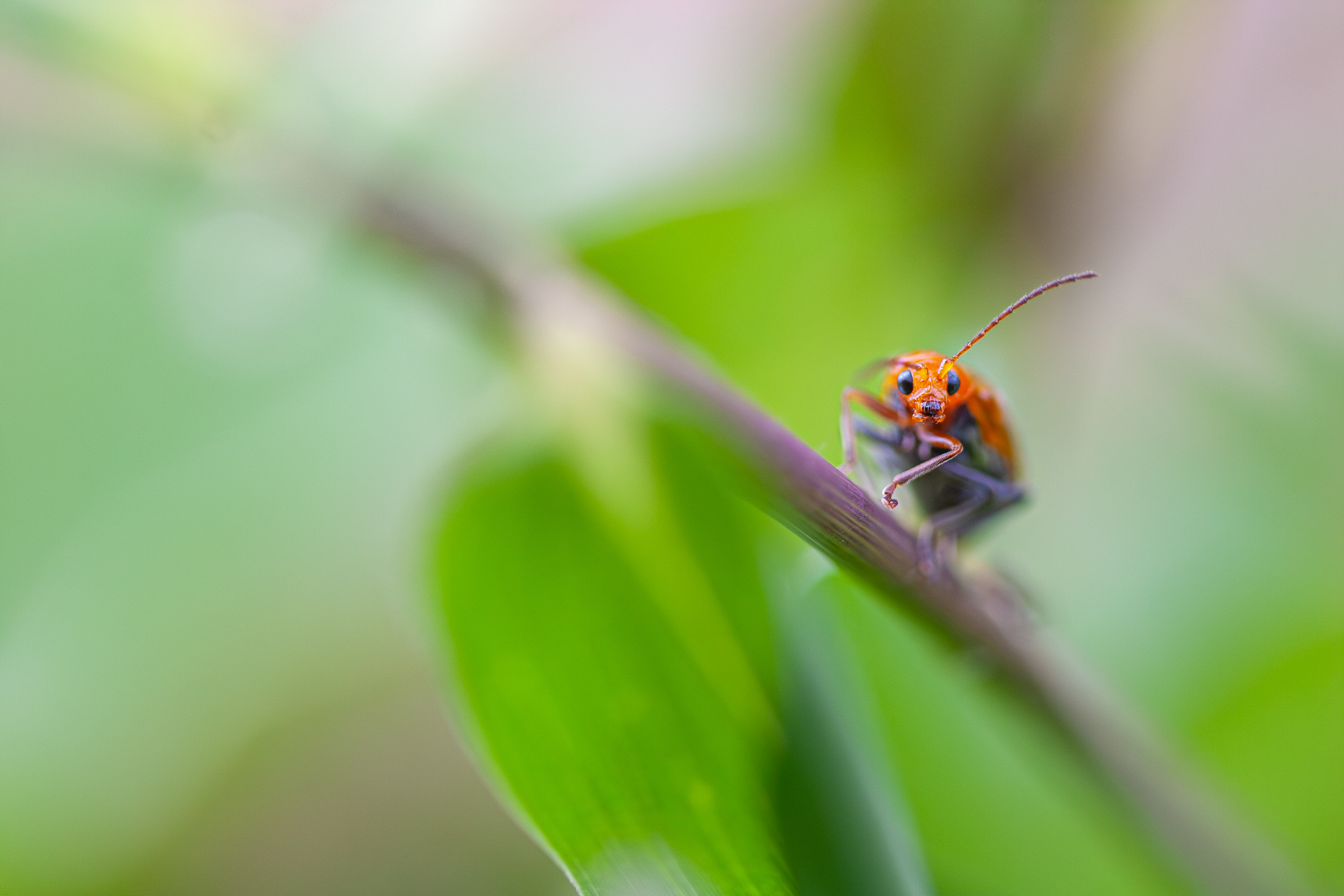 | 久しぶりに早起きして(^^;、いつもの谷戸山公園に行ってきました。もう梅雨入りしているんですってね。早くも梅雨の中休みとからしいですが、よく晴れた今日の午前、緑の中で虫や花たちとの出会いがありました。小さな生き物たちが懸命に生きている様を見ると本当に感動します。日頃の疲れが溜まっていたのですが、この小さな自然の中で少し癒された気がします。これからは虫たちの季節です。機会があるごとに追いかけていきたいと思います。(EOS 20D) |