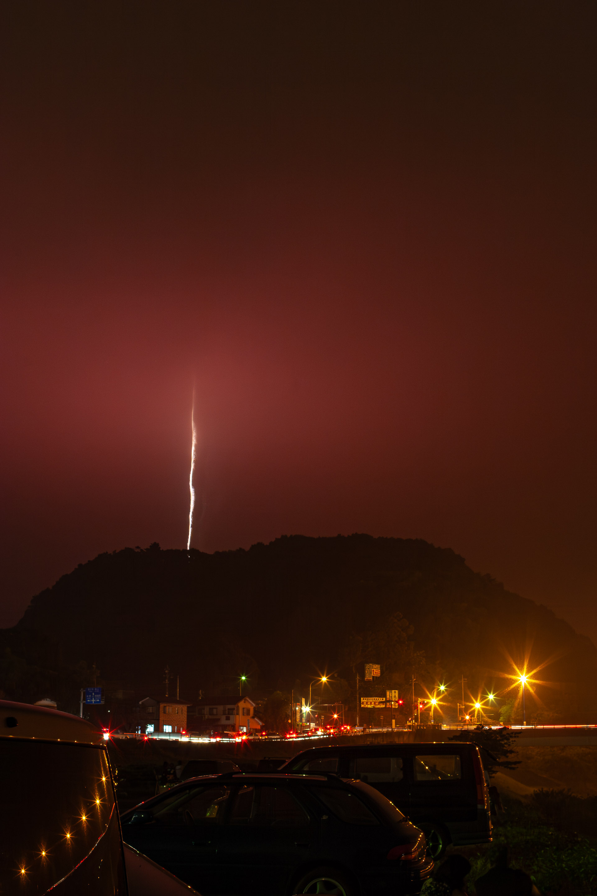 近場でやっていた花火大会は、神奈川県相模原市で行われた「相模原納涼花火大会」です。相模川の高田橋というところ周辺でやっていました。うまく撮れなかったのは仕方がないにしても、大型の花火を山側の方から打ち上げたのですが、曇っていて、他の花火より高く上がってしまうのがアダになり、雲の中で破裂していて、どんよりした雲が赤く輝く程度でした。主催者や花火師にとっては屈辱的だったでしょうね。