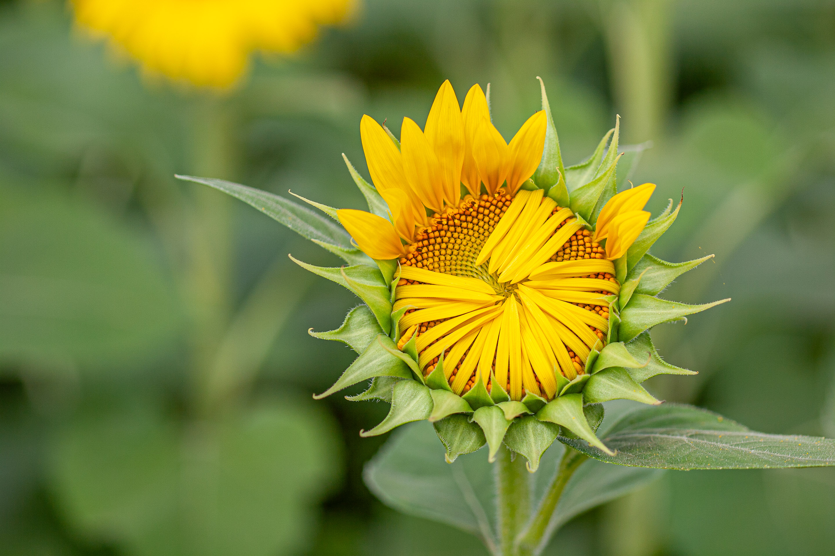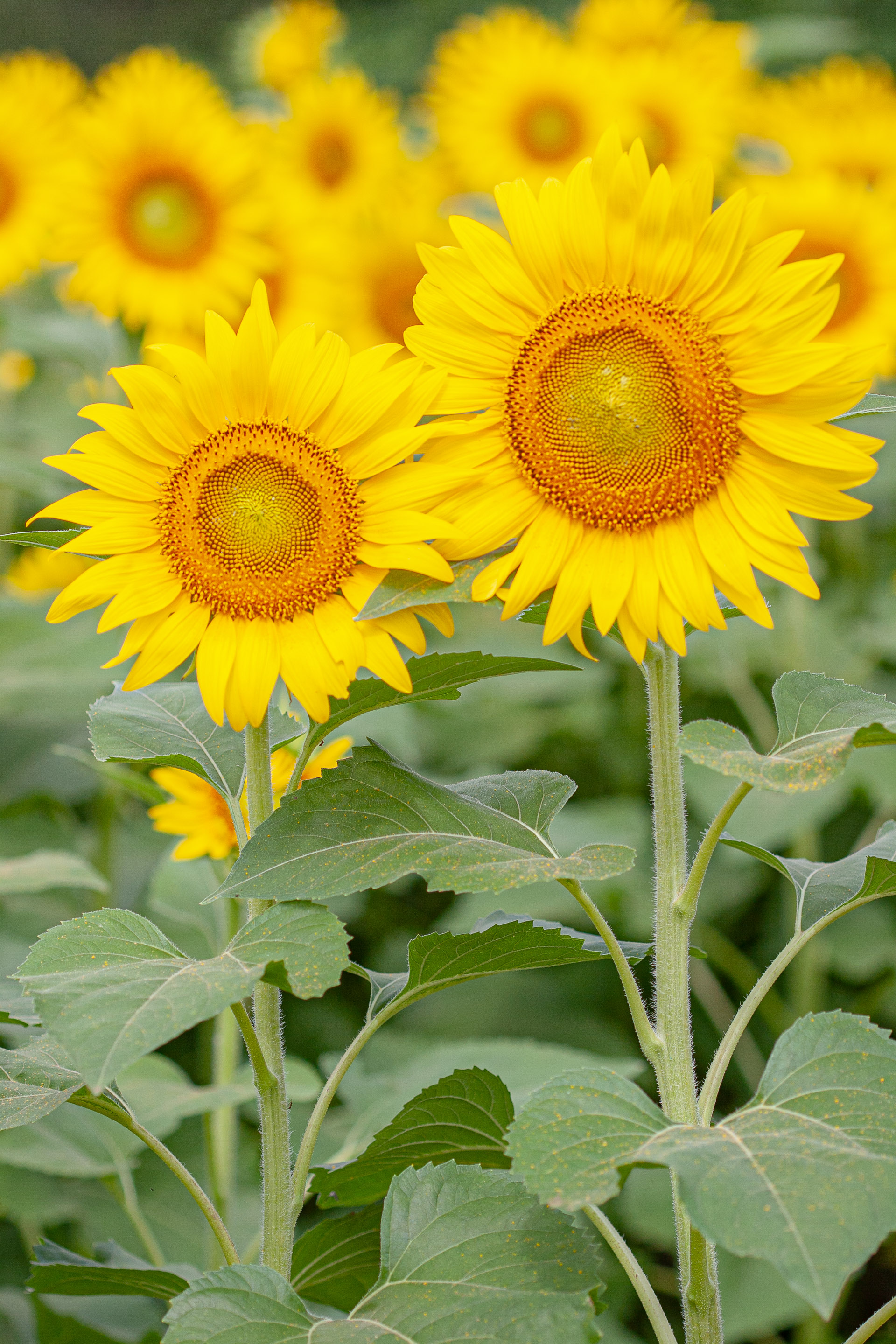 今年もすでに8月、例年のごとくひまわりの季節がやってきました。神奈川県座間市はこの時期「ひまわりまつり」として、市内のあちこちに咲く時期を少しずつずらして、8月中旬ぐらいまでひまわりが鑑賞できるようにしています。今日、訪ねたのは早く咲くポイントの栗原高校付近です。(EOS 20D)