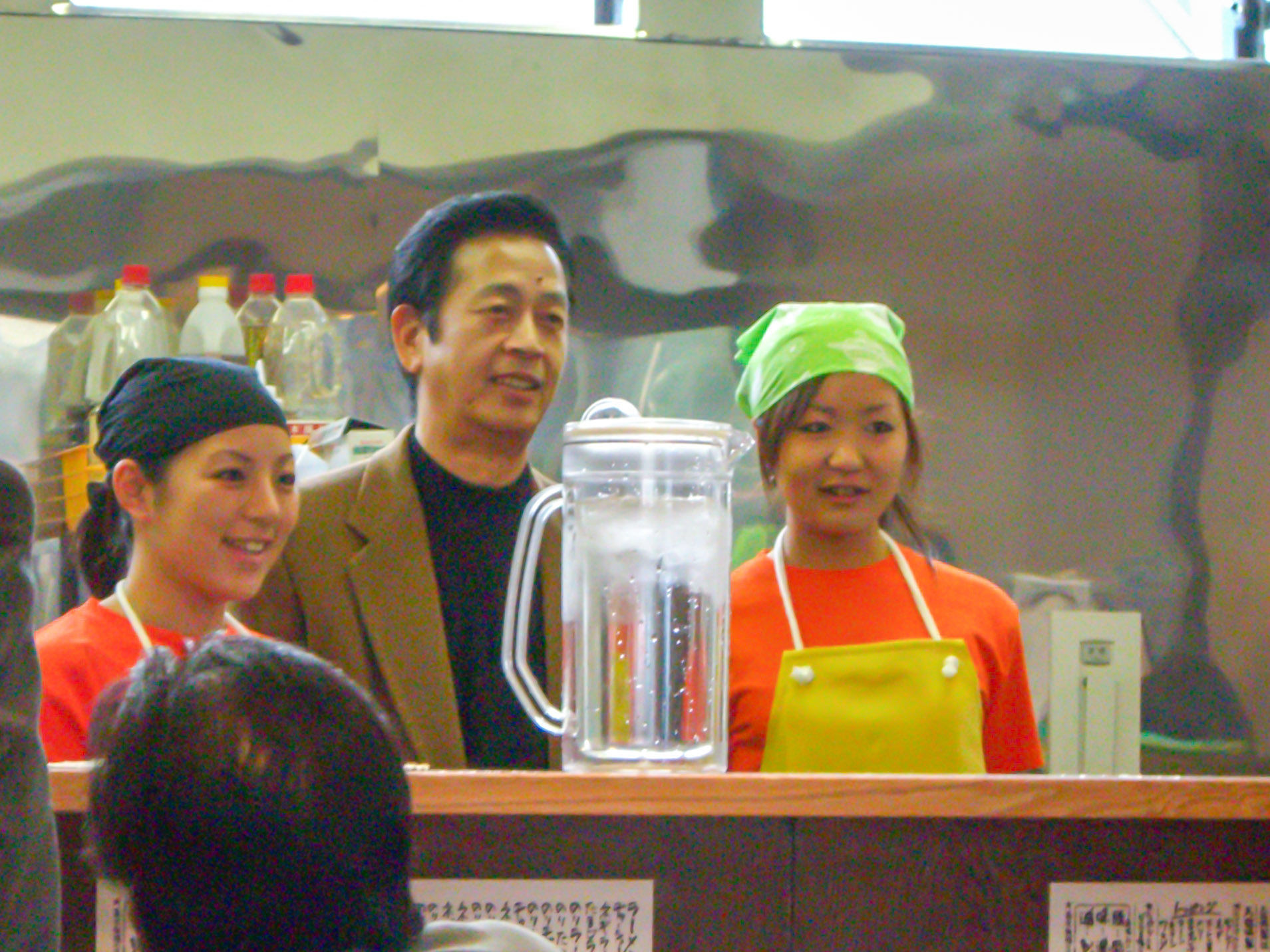 ところで、入るときに俳優の村野武範さんが食べに来ていたようで、お店のスタッフと記念写真を撮って帰るところでした。テレビカメラは回っていなかったみたいなので、取材ではなさそうでしたが、愛想よくお客さんとも握手して去っていきました(^.^)。(EX-S500) |