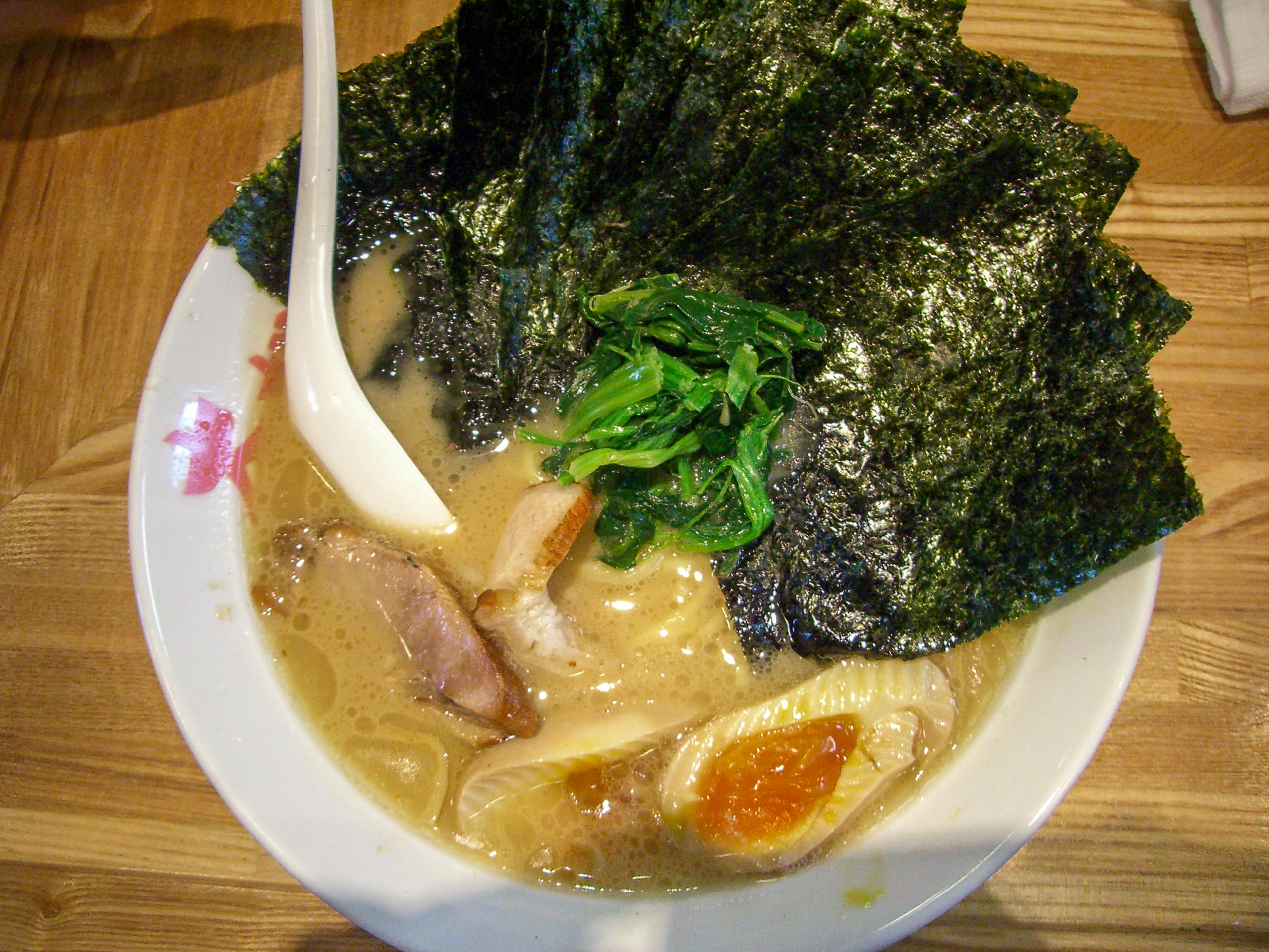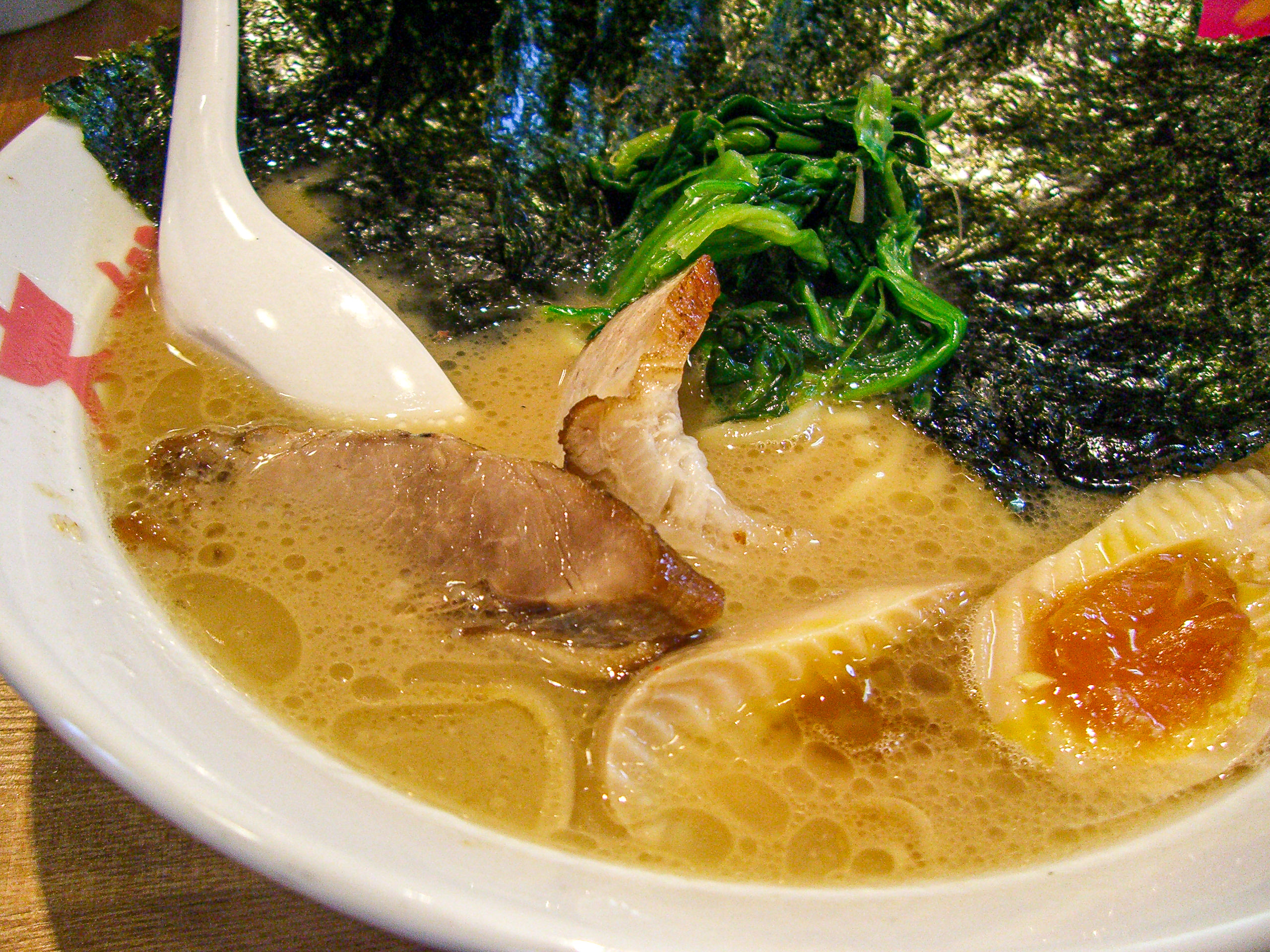 見た感じは家系とんこつラーメンですが、味がまろやかというか、甘くとろっとしていて、若い女性や子どもでも食べやすいラーメンになっています。「ワタシ的」には市内の家系の「ラーメン家大ちゃん」の方がはるかに好きですね。好みの問題だから仕方がありません。