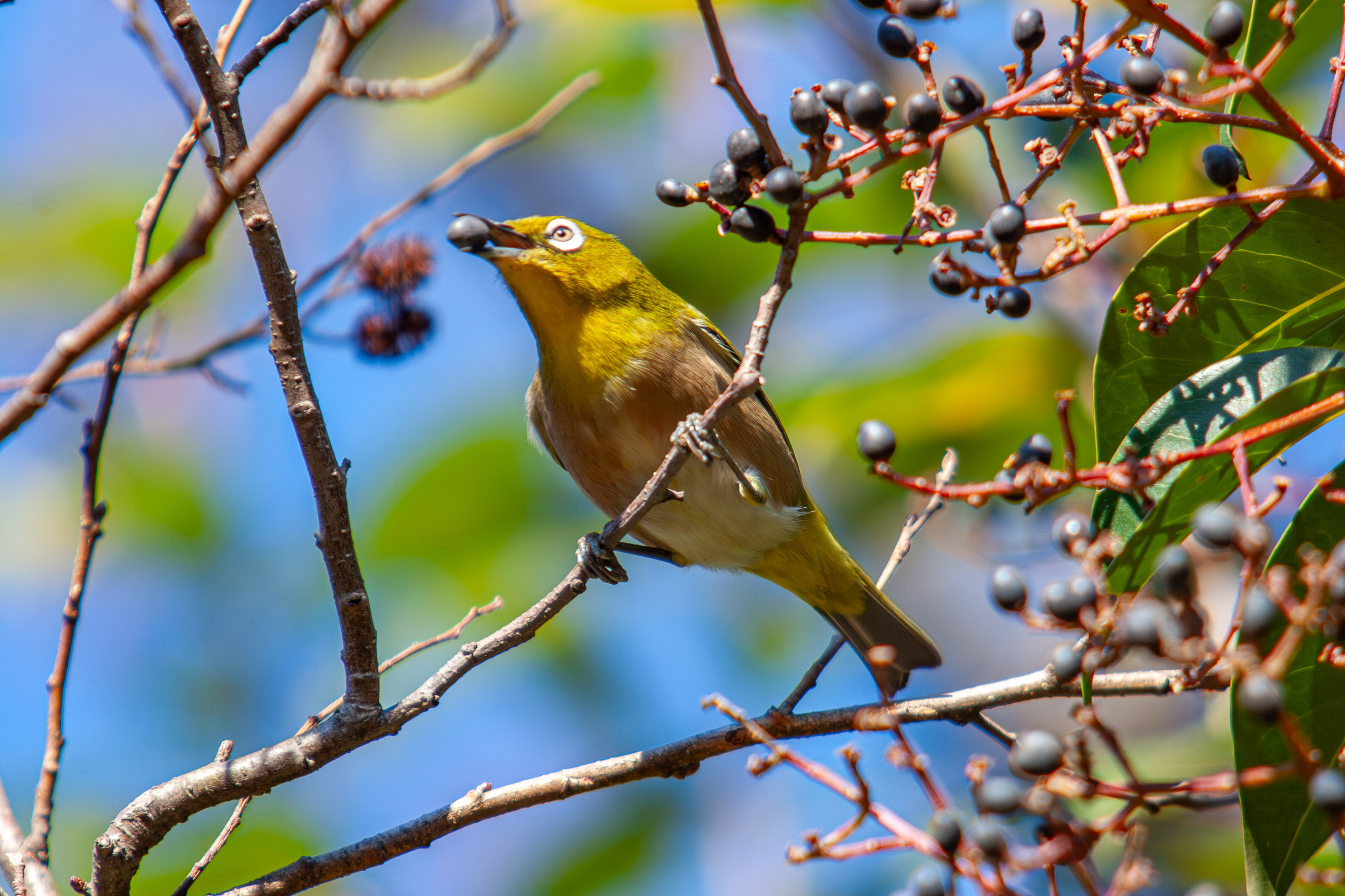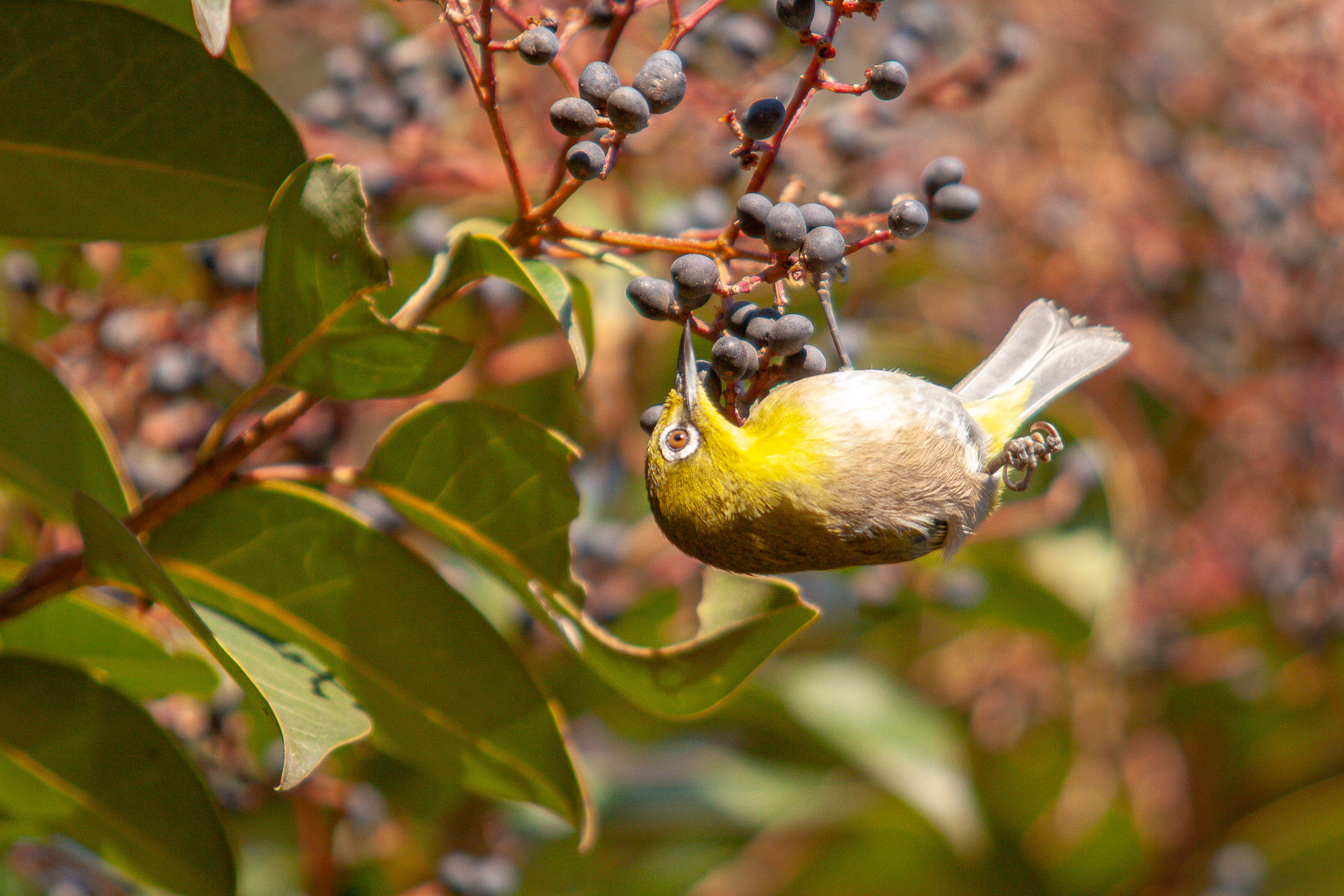 木の実を食べに5、6羽のメジロが何度も目の前に現れてくれました |