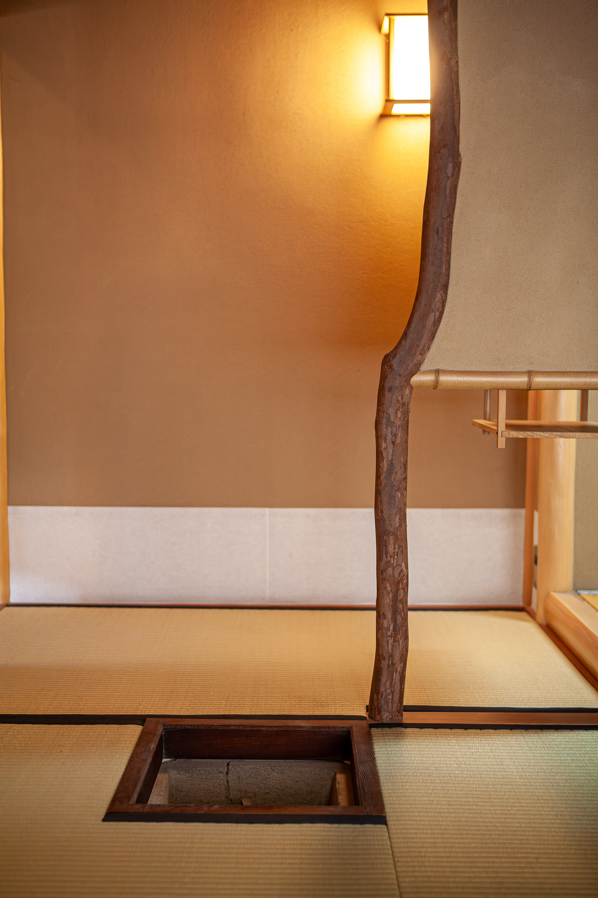 今日は書院の利用がありましたが、茶室は空いていたようで、係りの人が現れ、「見学されますか?」と外回りを撮影している怪しげな私に声を掛けてきたので、「は、はい、お願いします(^_^;)。」という感じで茶室内にも入ることができたのでした。