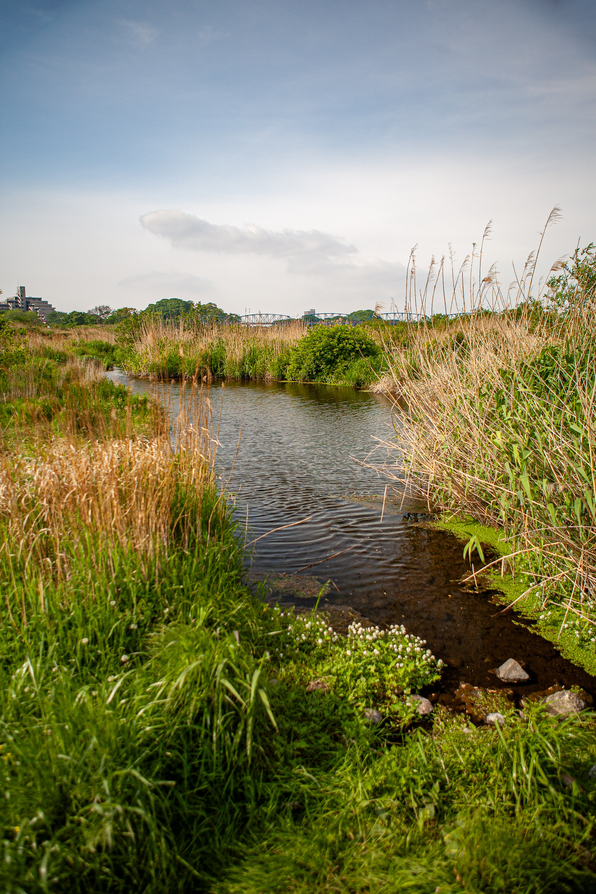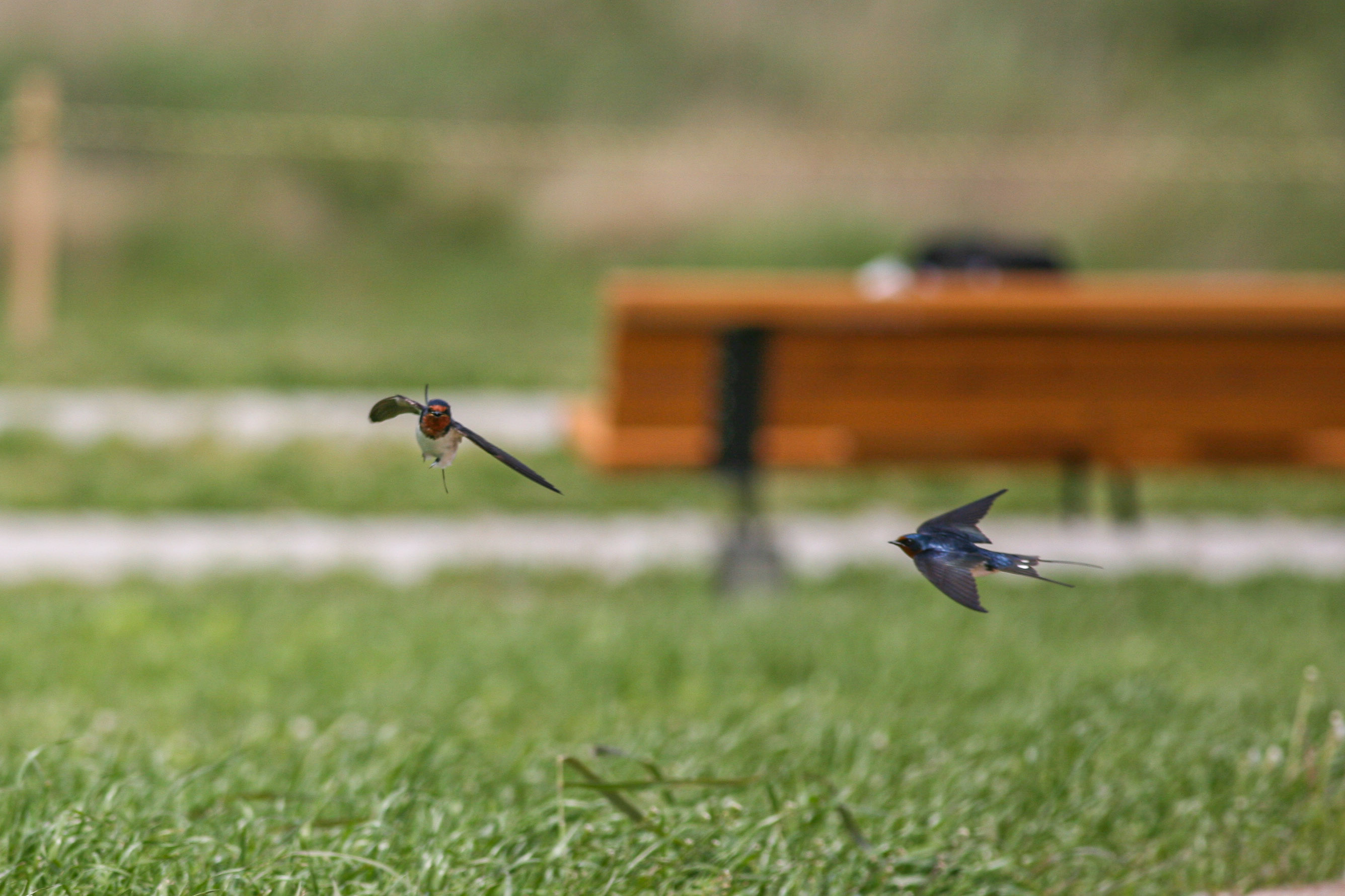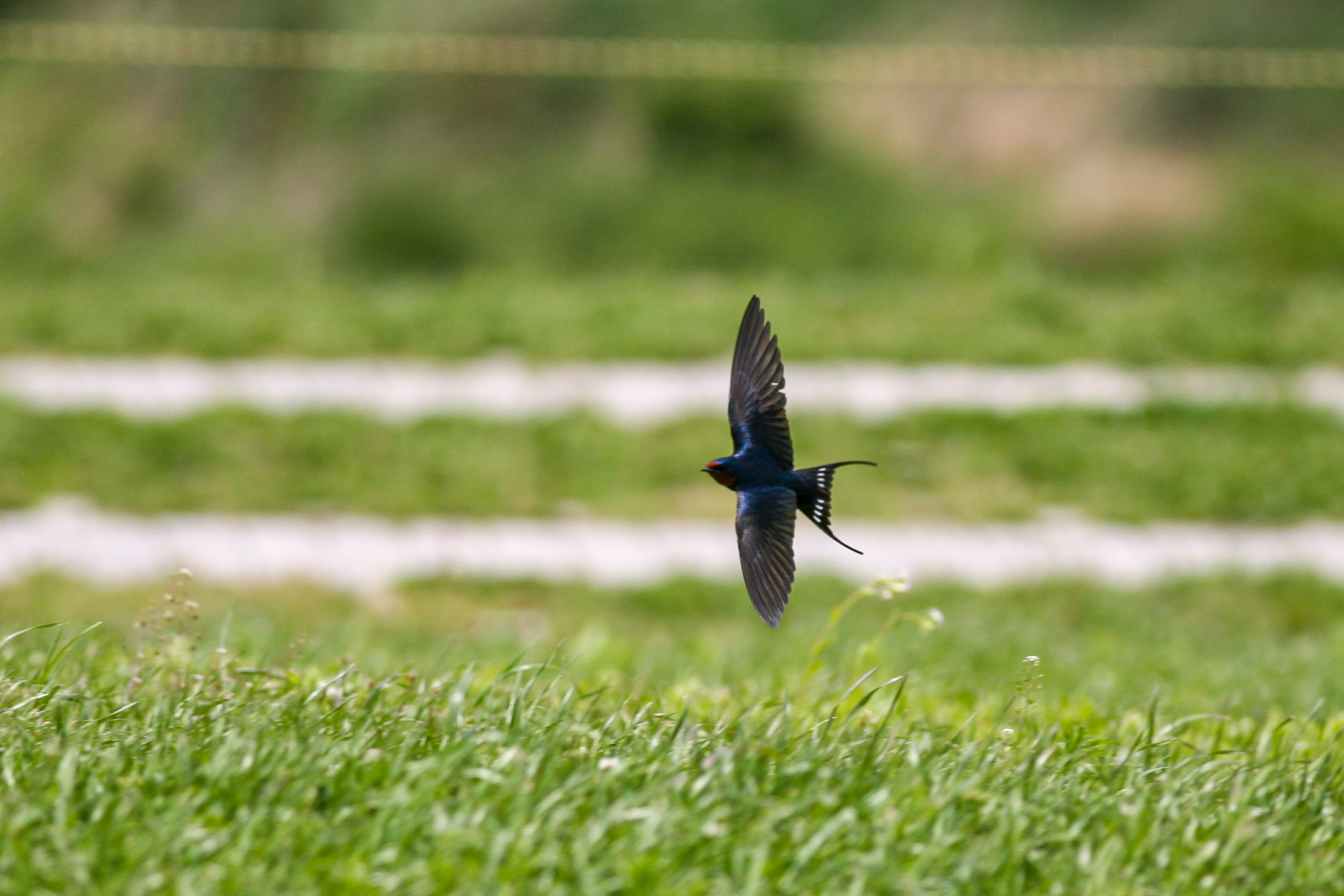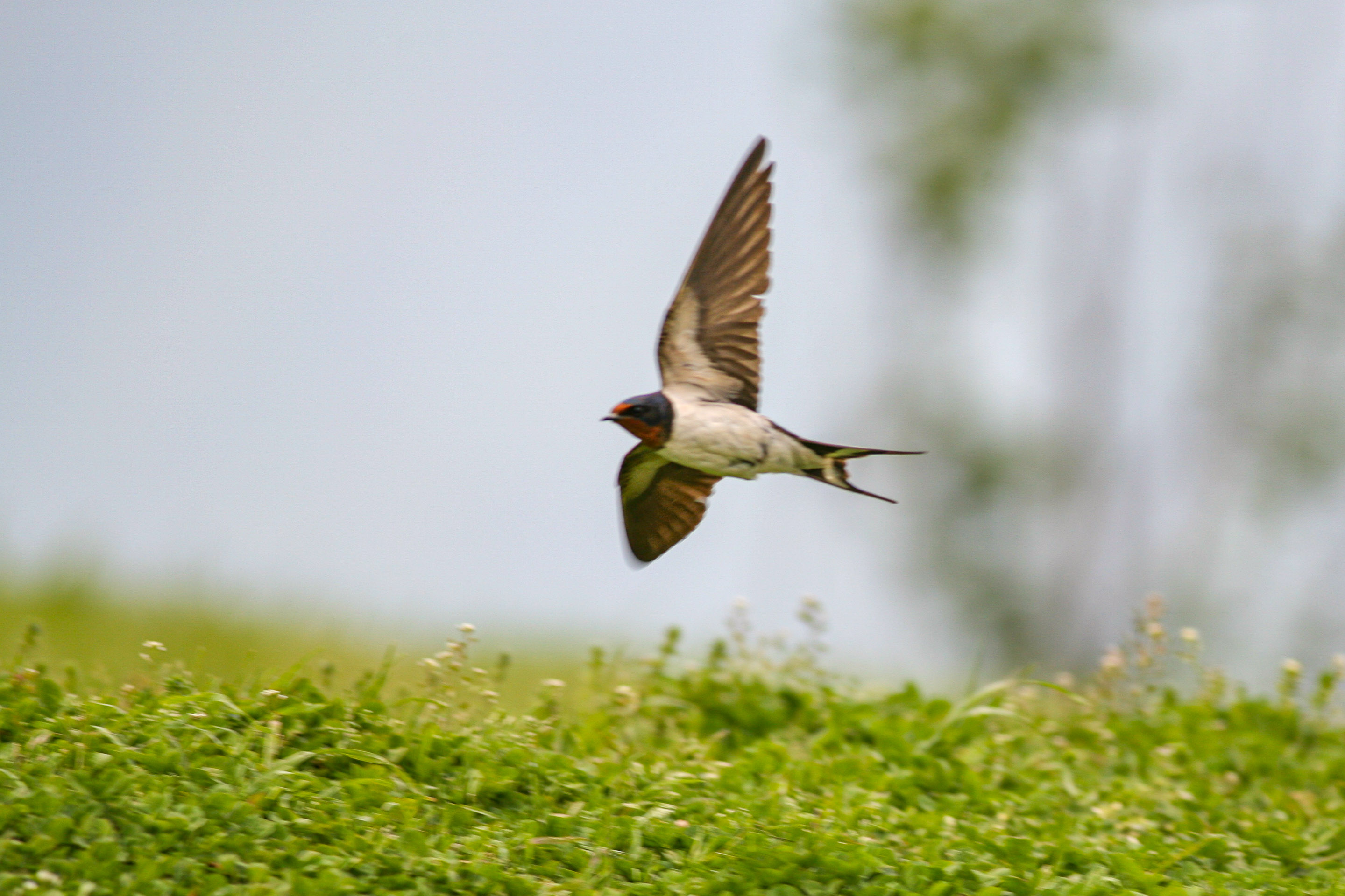 また昨日と同じところに来てしまいました。今日は雲が薄くかかり風も強く、葦の中にいるオオヨシキリの撮影には厳しかったですね。何枚か撮って、公園の方に引き返すと、ムクドリやスズメ、ツバメが人々が行き交う中を縦横無尽に飛び回っている様子が目に入りました。次第にツバメばかりを追いかけるようになり、3時間ぐらいはツバメでした。