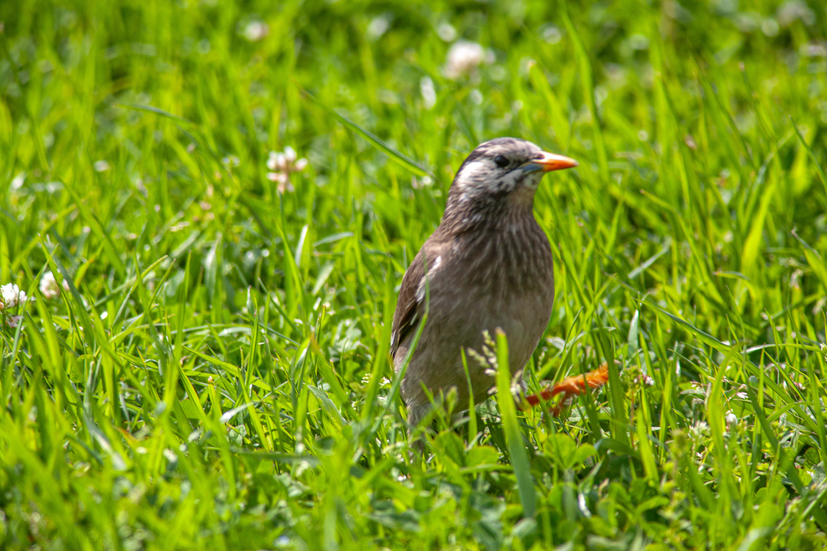 ムクドリに混じってスズメたちもいます 可愛いですね |