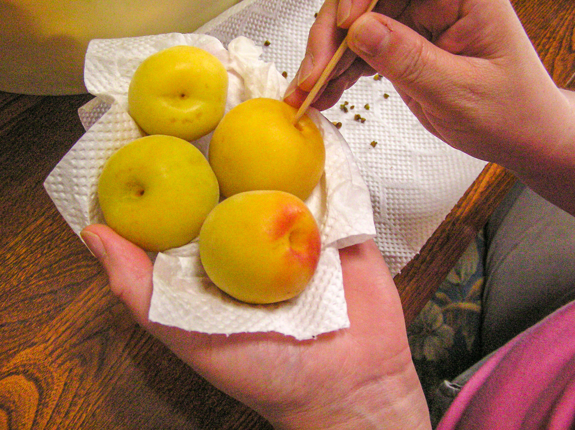 買ってきた梅は、樽にあけて、午前中水に漬けておきました。そして、午後から作業開始。