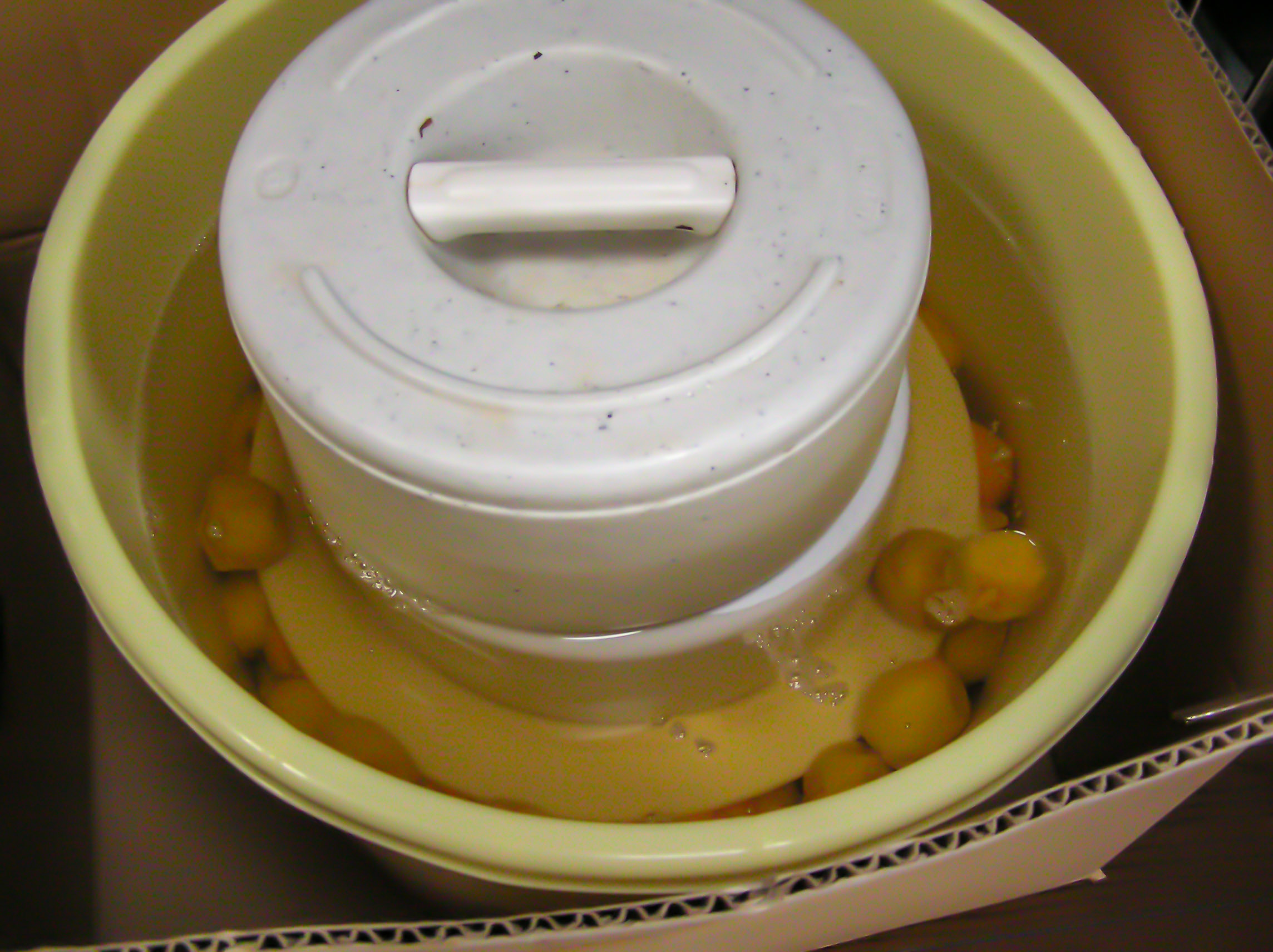 これで2週間ほど漬け込み、梅の位置を上下入れ替える作業を2回繰り返すことにしています。多分そうすると真っ赤に染まると期待しているのです(^-^)。(C-750